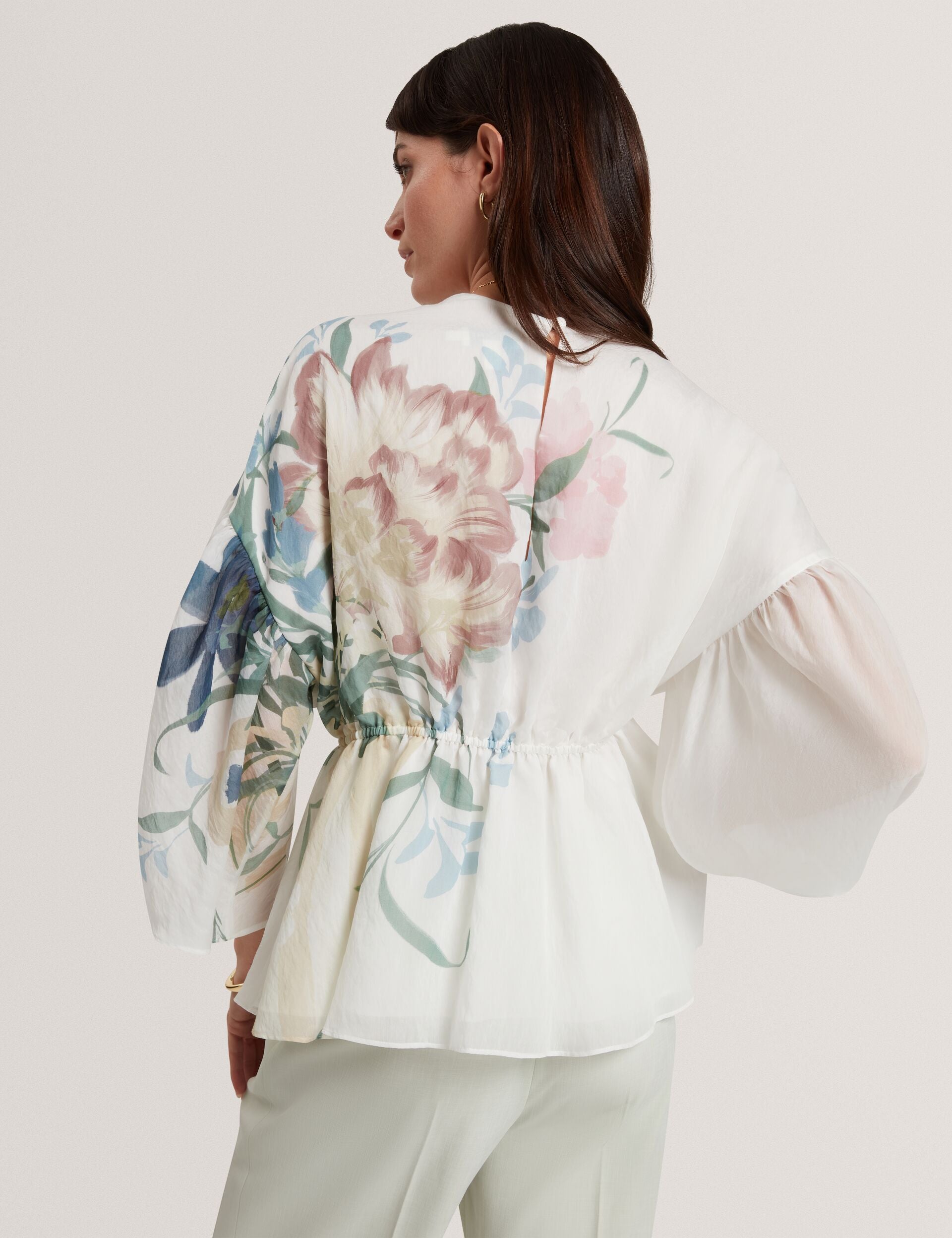 Soft Blooms Puff Sleeve Peplum Top
