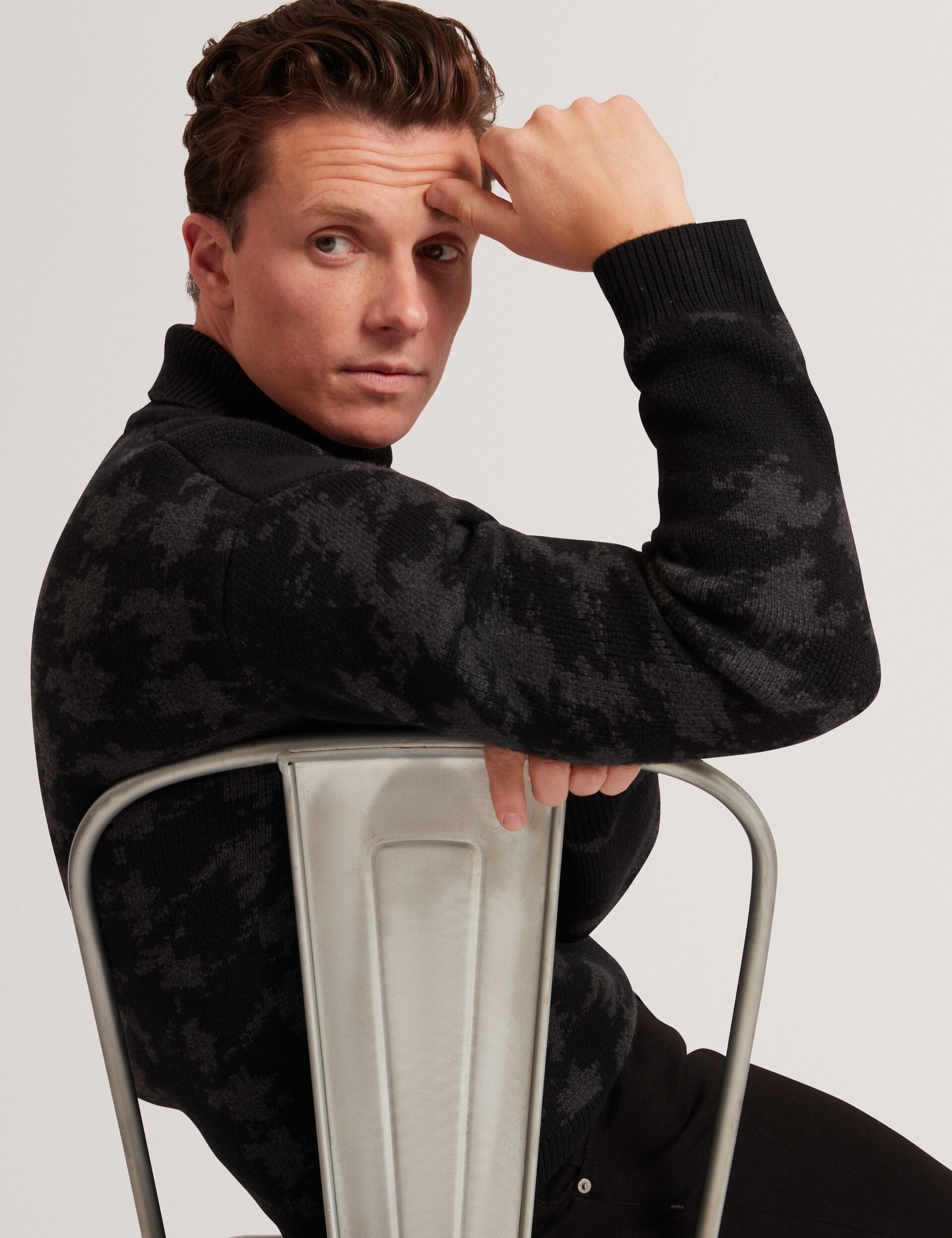 Snug and stylish, the AIRLOR roll neck jumper is a cold weather must-have. Featuring a houndstooth check print in a subtle monochrome palette, this thick wool-blend knit is designed in a relaxed fit that looks instantly cool when paired with casual pieces.