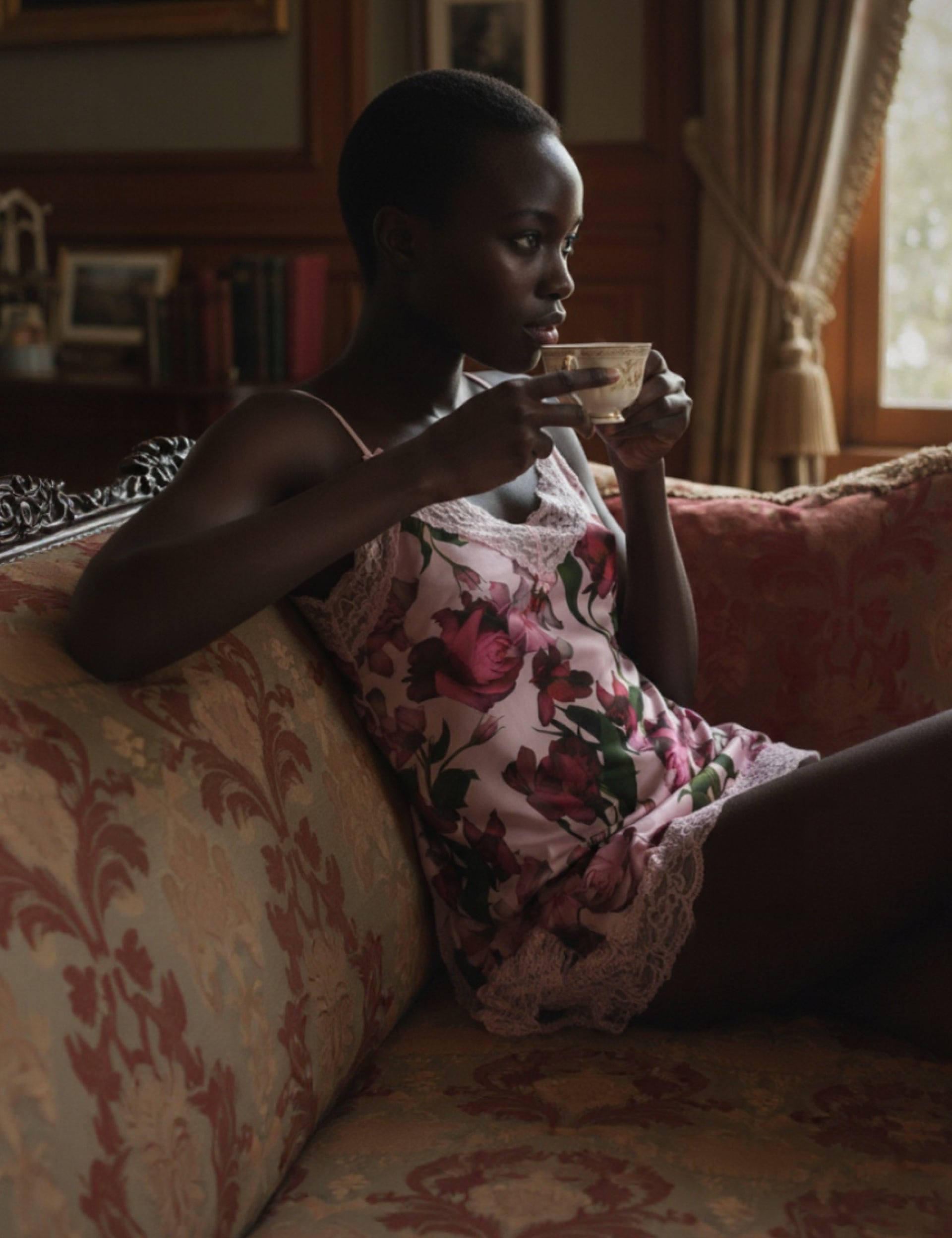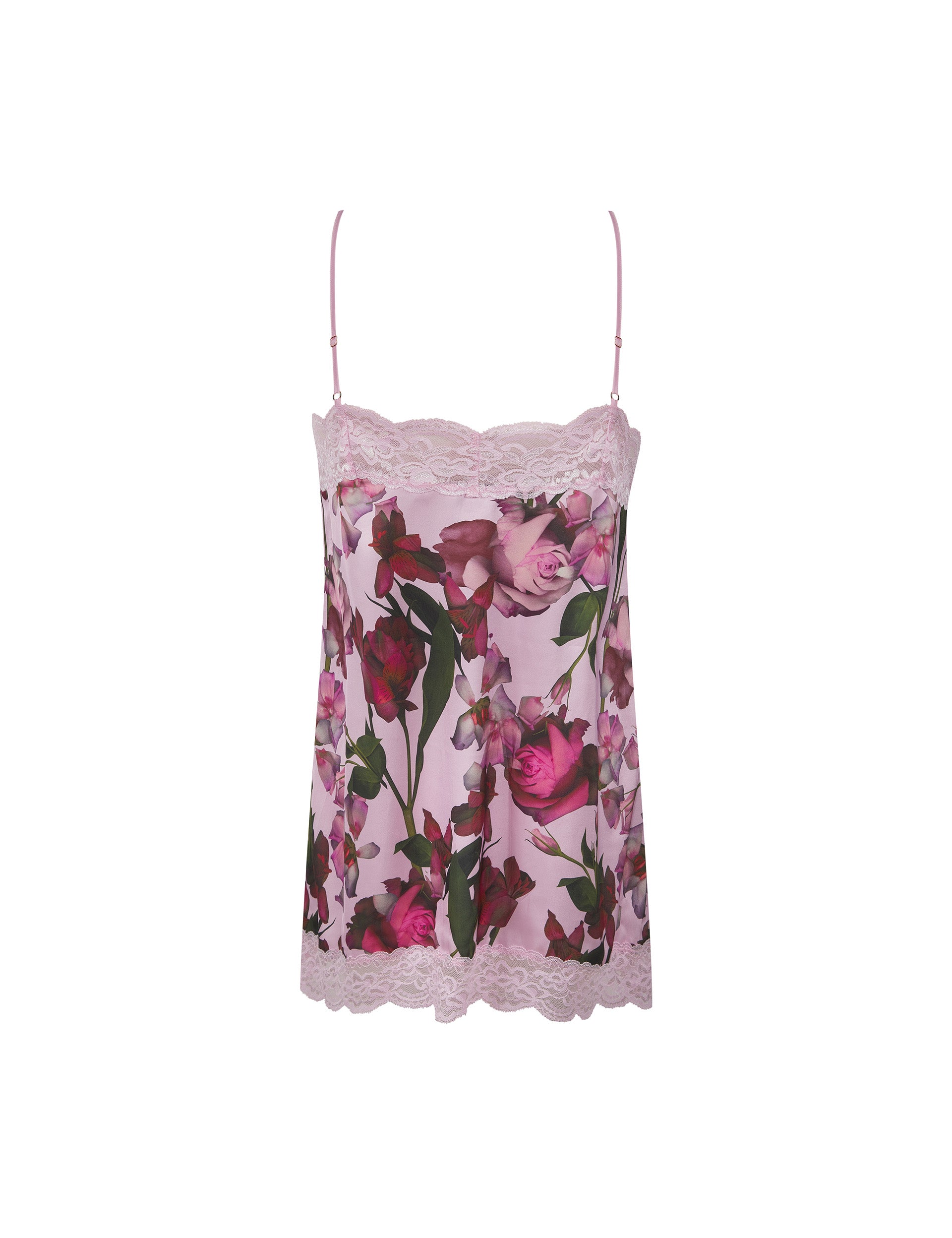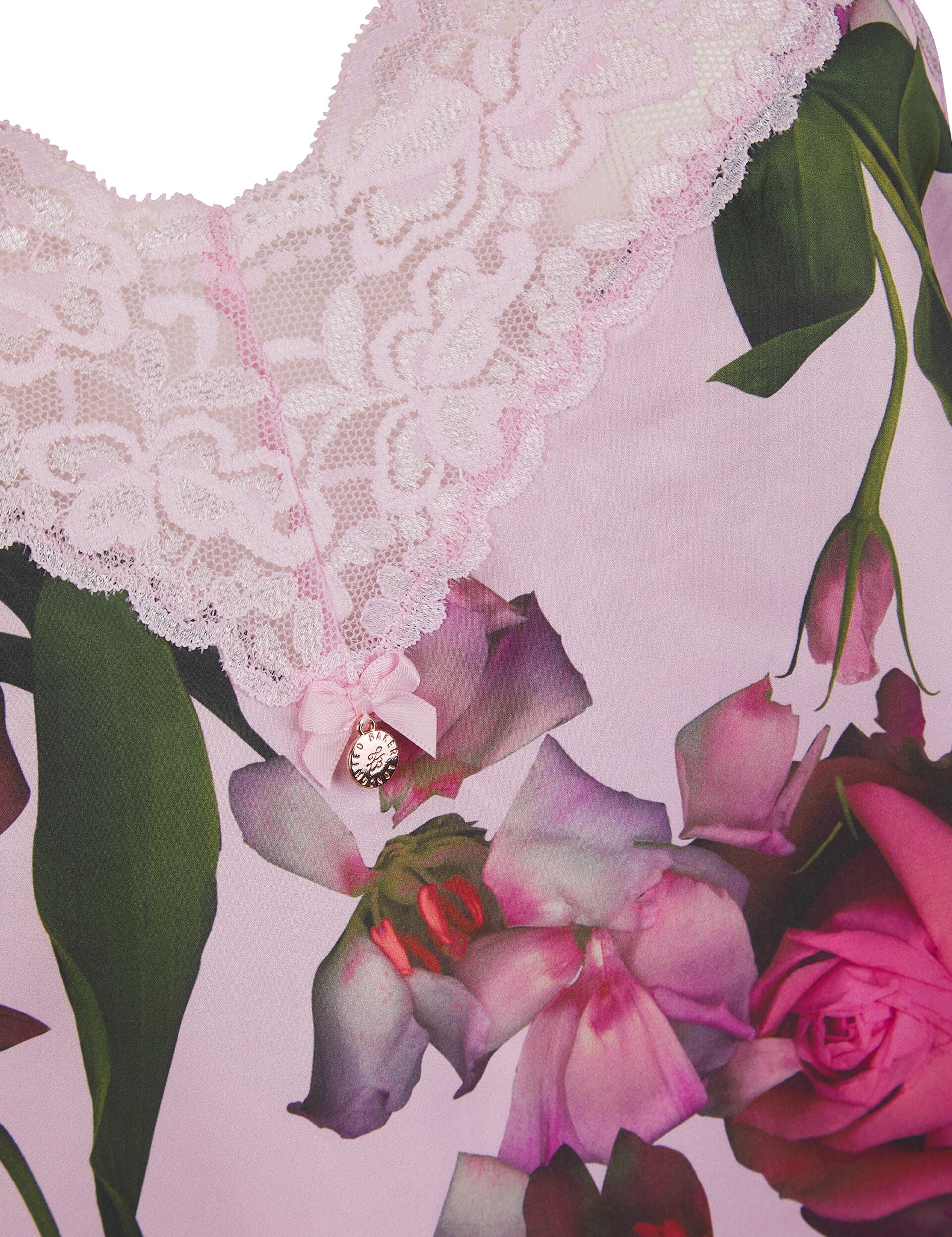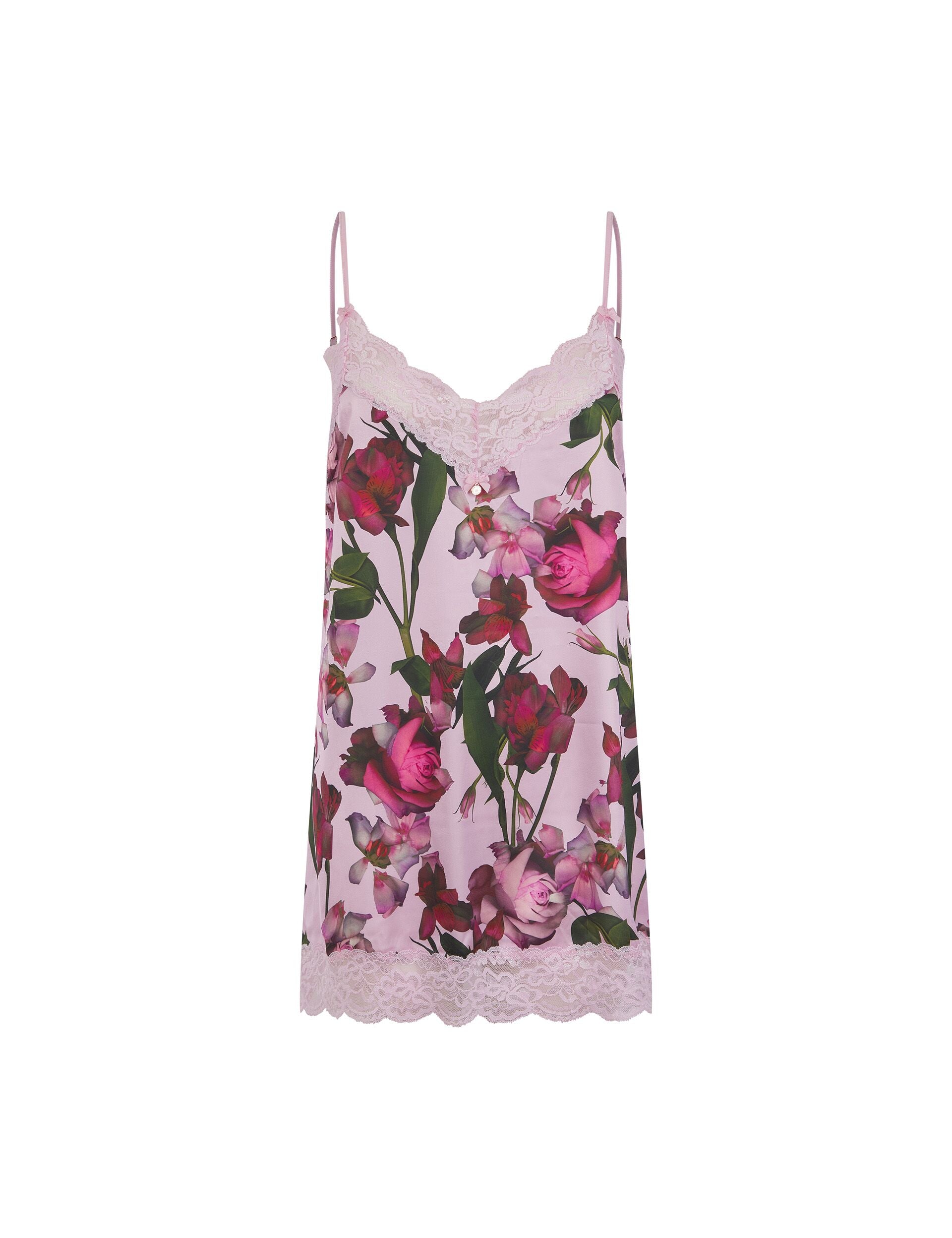 Floral Print Satin & Lace Chemise