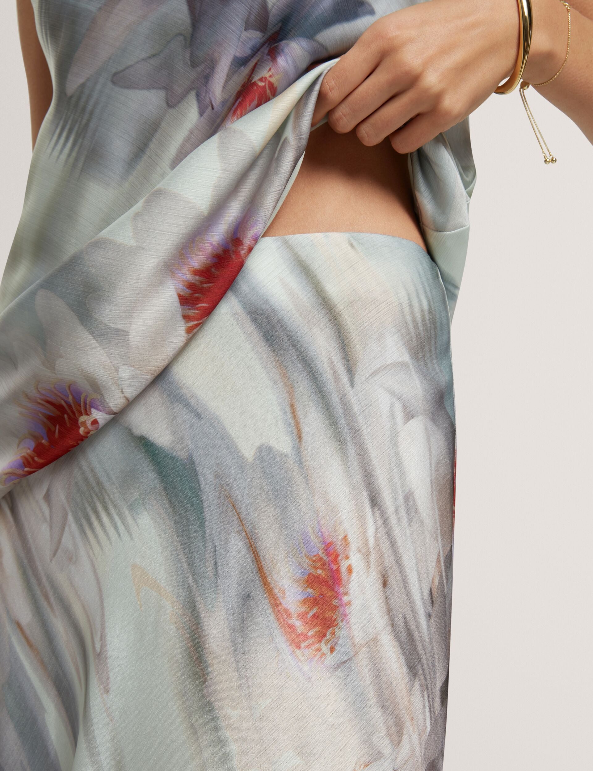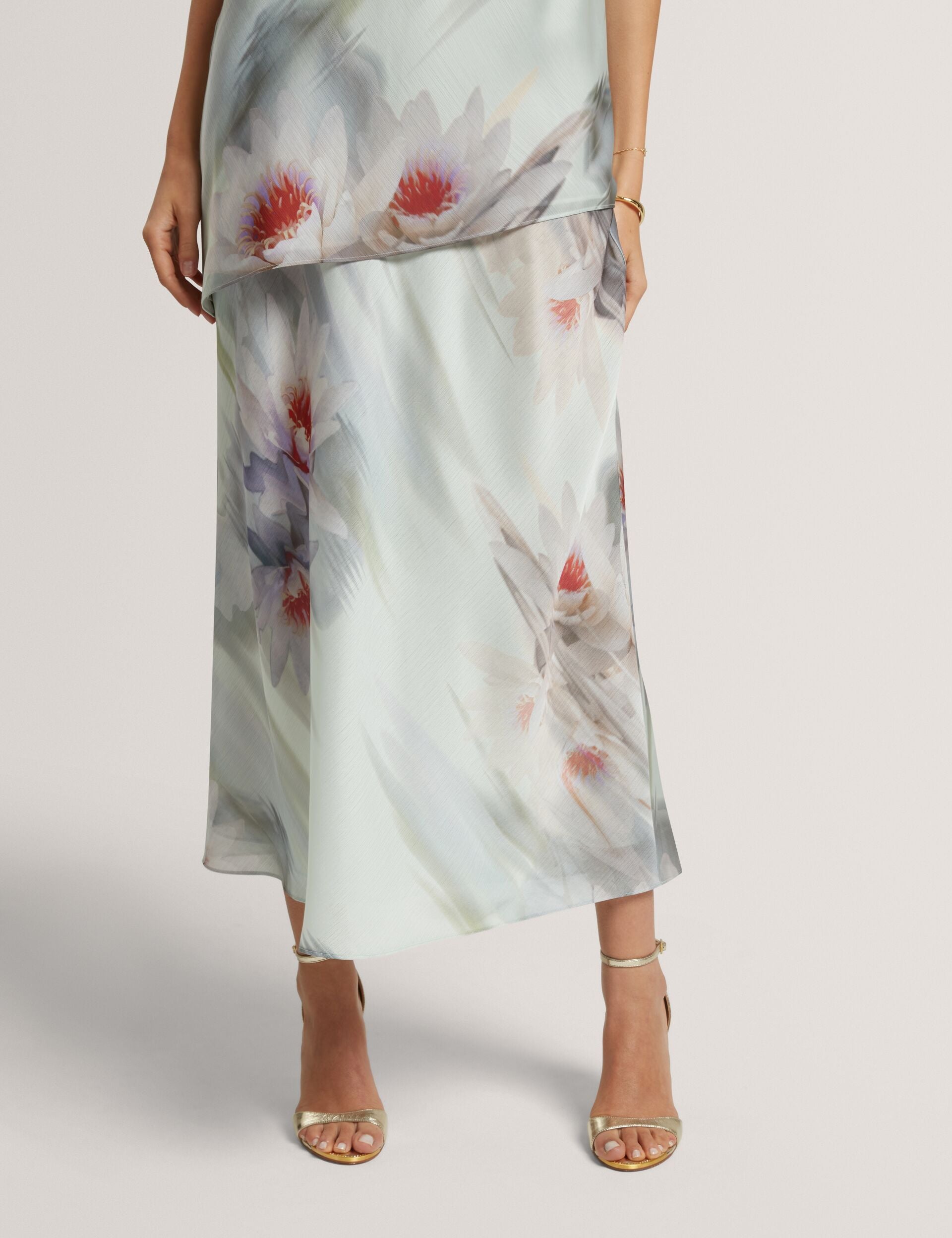 Lily Print Crinkled Bias Midi Skirt