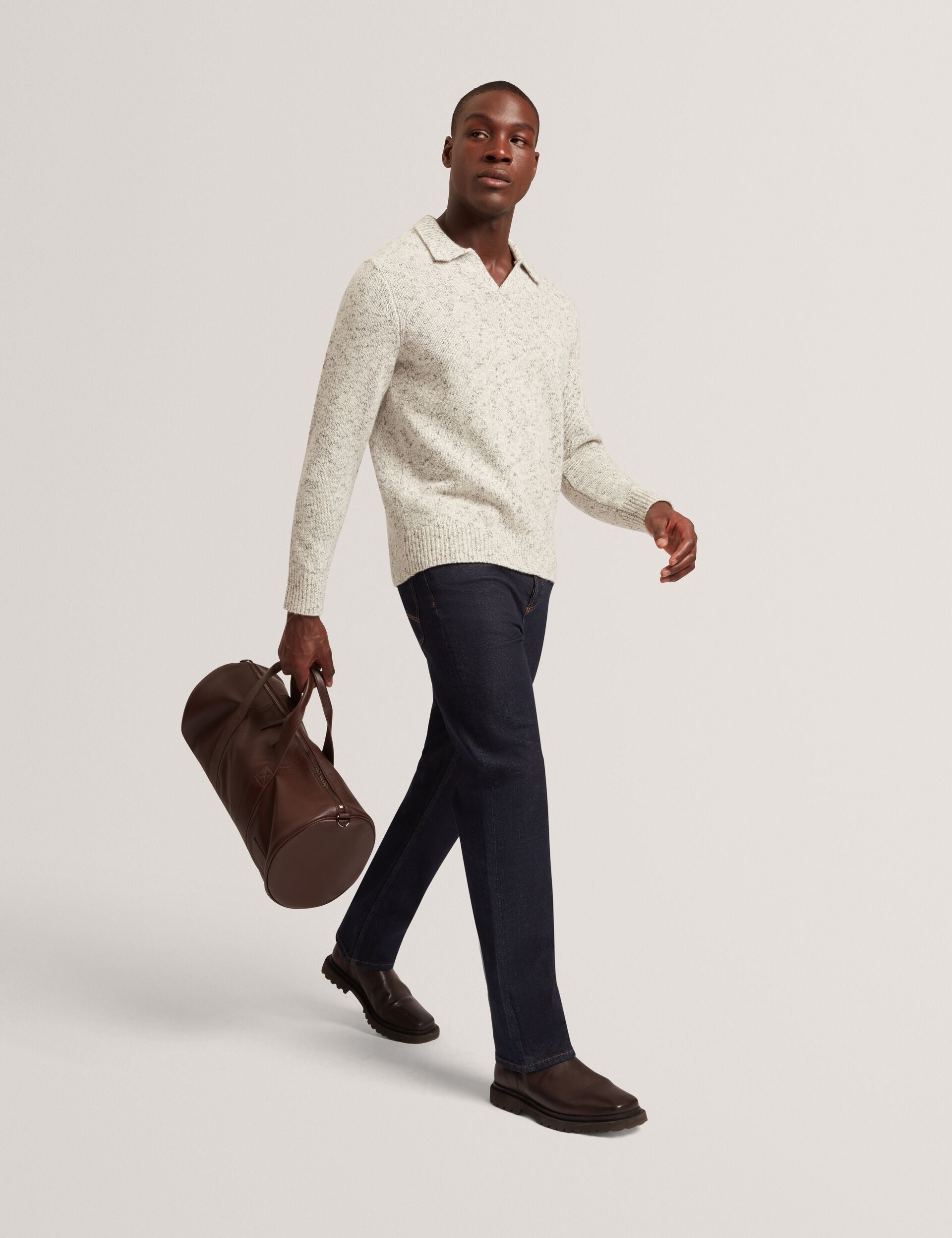 Melange Knit Long Sleeve Polo Shirt