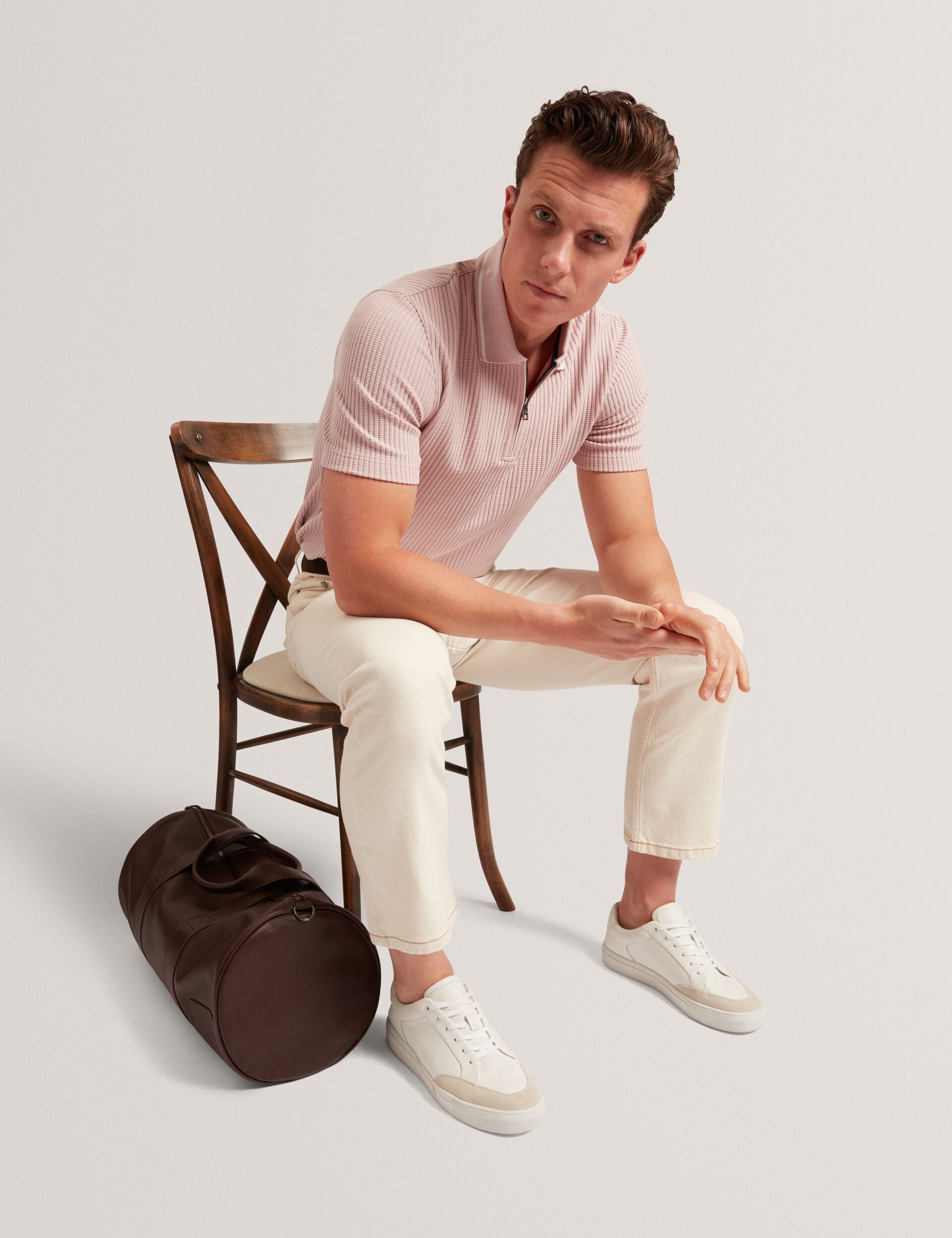 Textured Rib Knit Zip Neck Polo