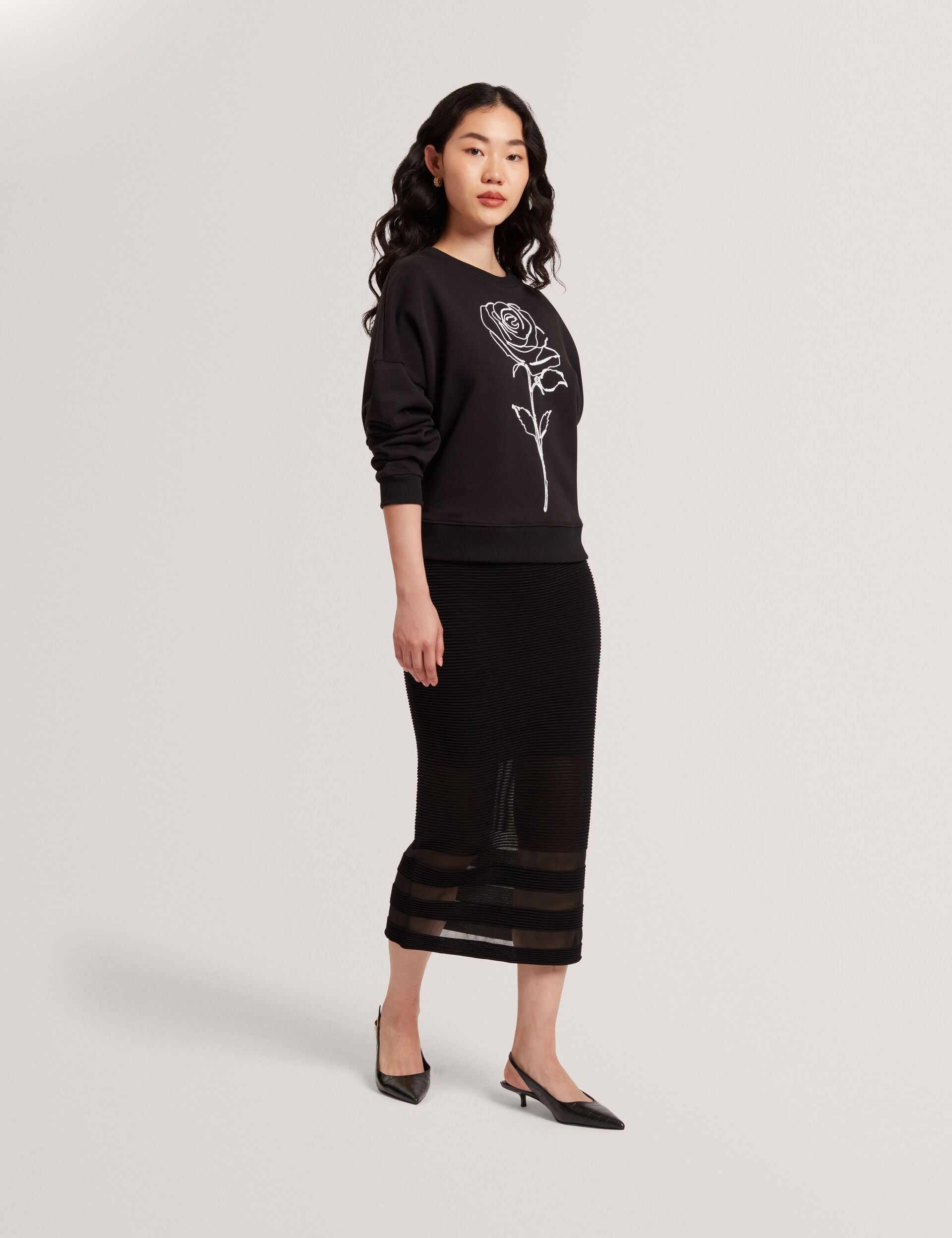 Flattering, comfortable, and sleek - it's the CAIRIE knit pencil skirt. Stitched with a rib texture and complete with sheer panelling at the hem, this midi boasts irresistible texture that will elevate even the most basic of pieces.