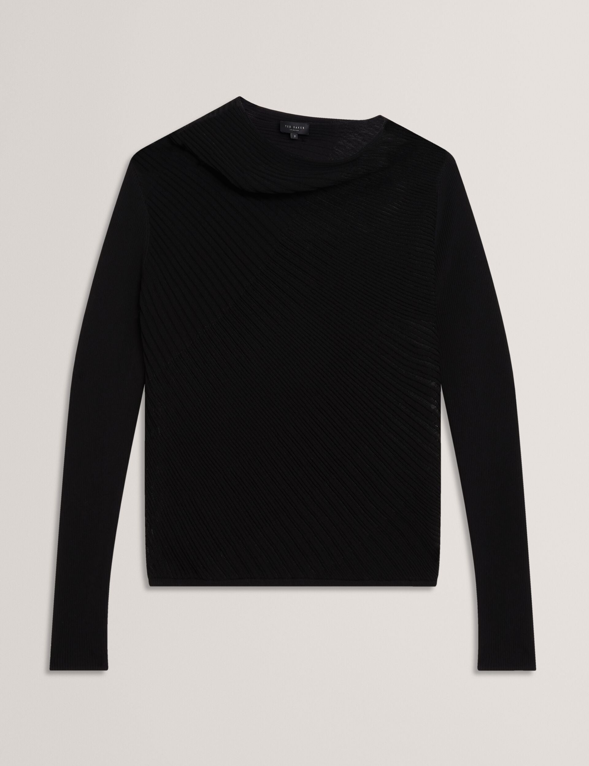 For looking put-together without trying, there's CEYLOAA. Crafted from an engineered knit fabric, this long sleeve top features textured stripes and sheer panelling throughout that instantly elevates your staple pieces.