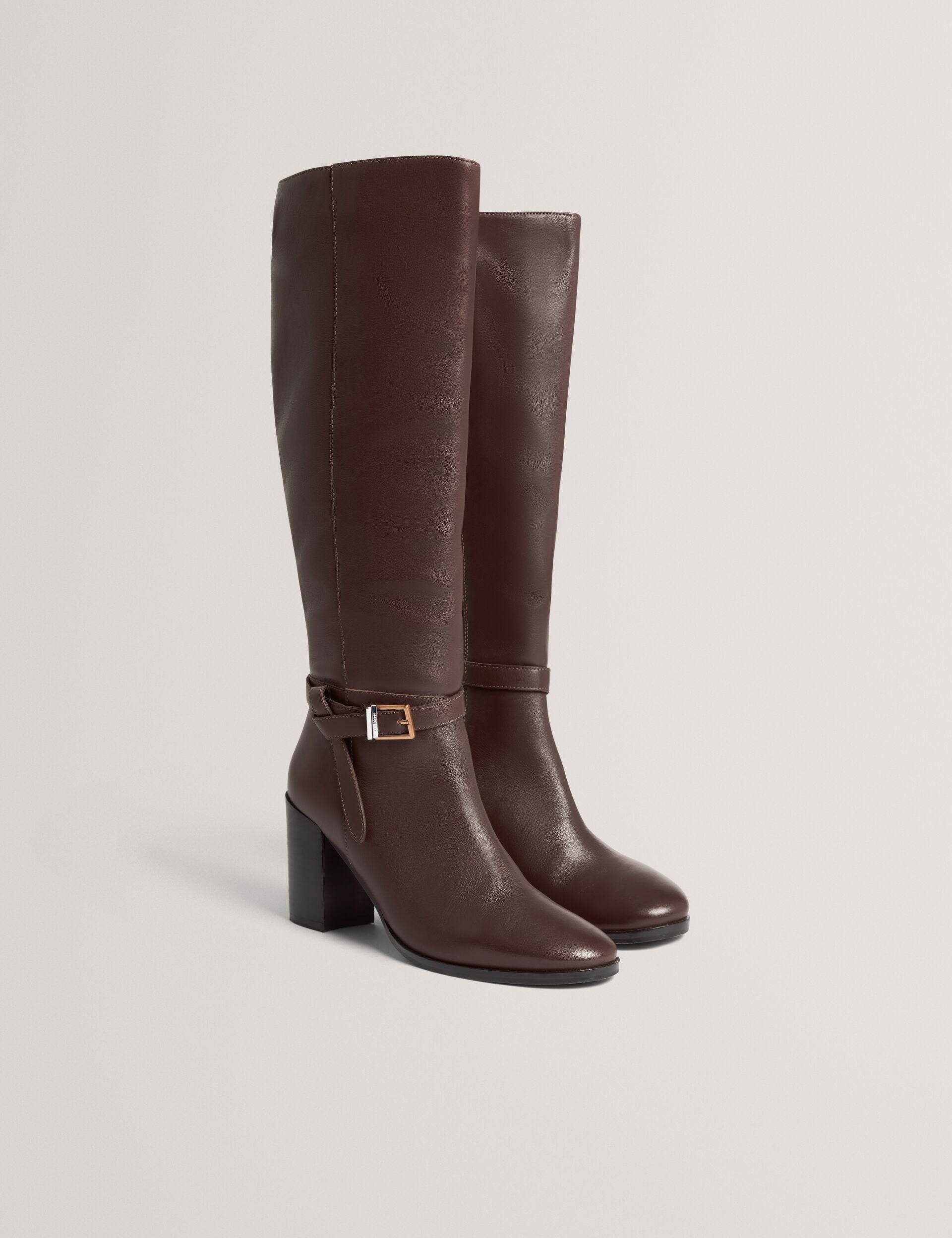 Saddle up in style with the CLOELLA equestrian-inspired knee-high boots. Crafted from 100% genuine leather, they feature a rounded toe, chunky block heel, and signature belt detail for a timeless, confident look.