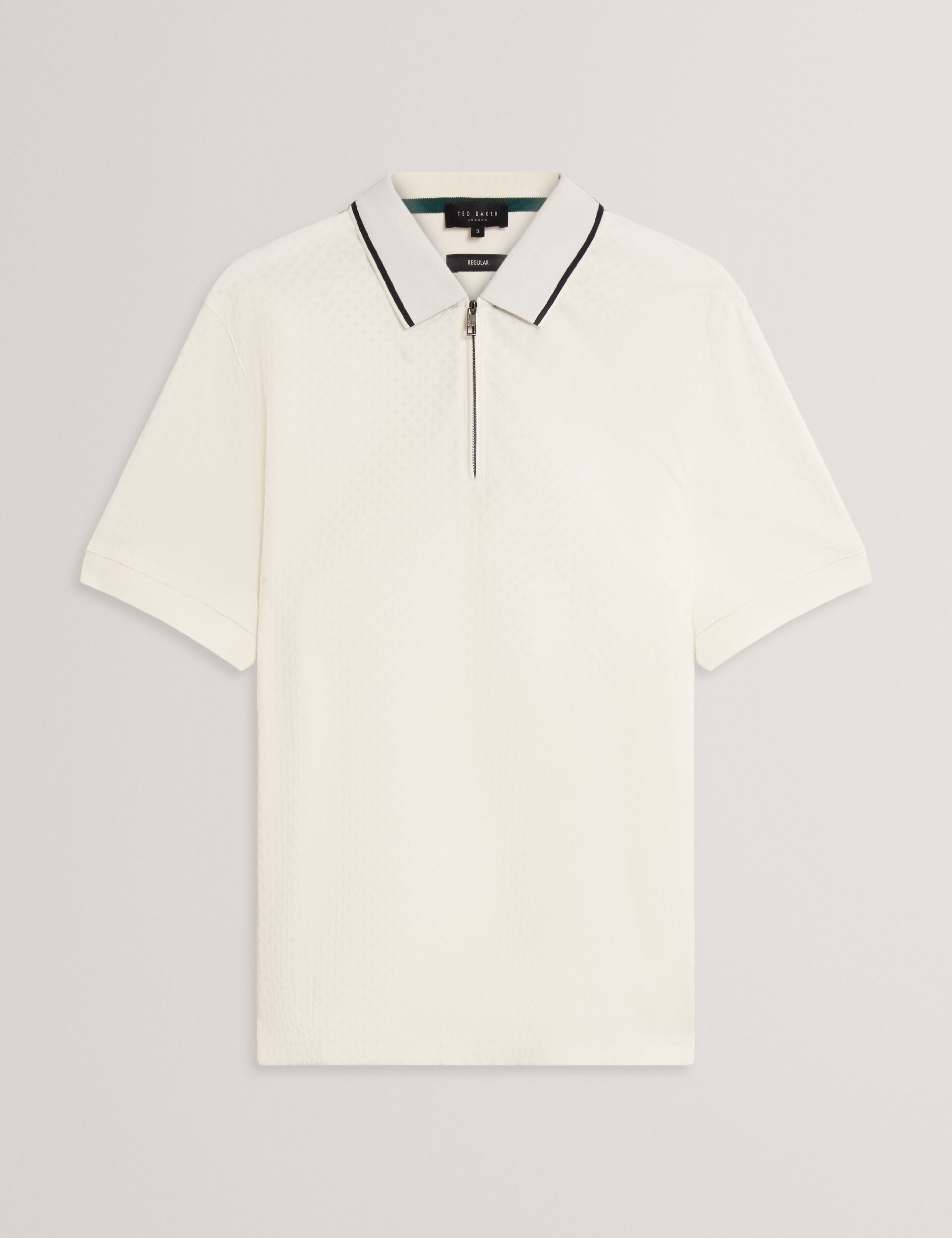 COPHEN makes a sharp addition to your polo collection. Our signature T texture gives it that designer twist, and we've trimmed the collar with a stand-out single stripe. Made from stretch cotton fabric, this piece is complete with a modern zip neck.