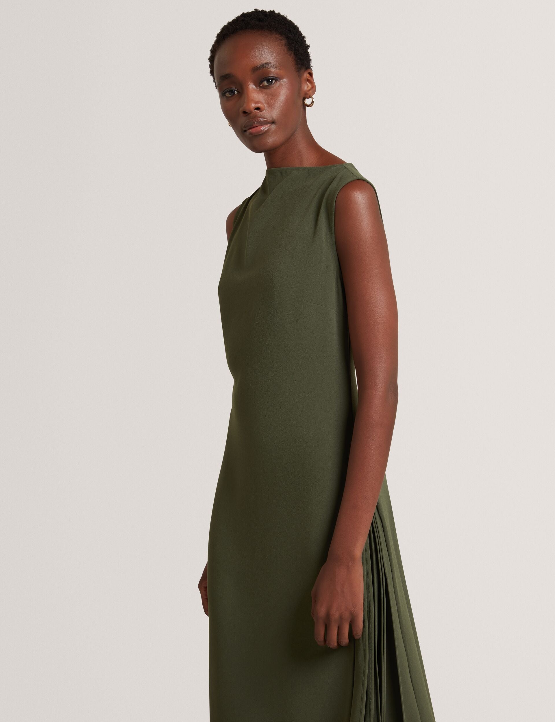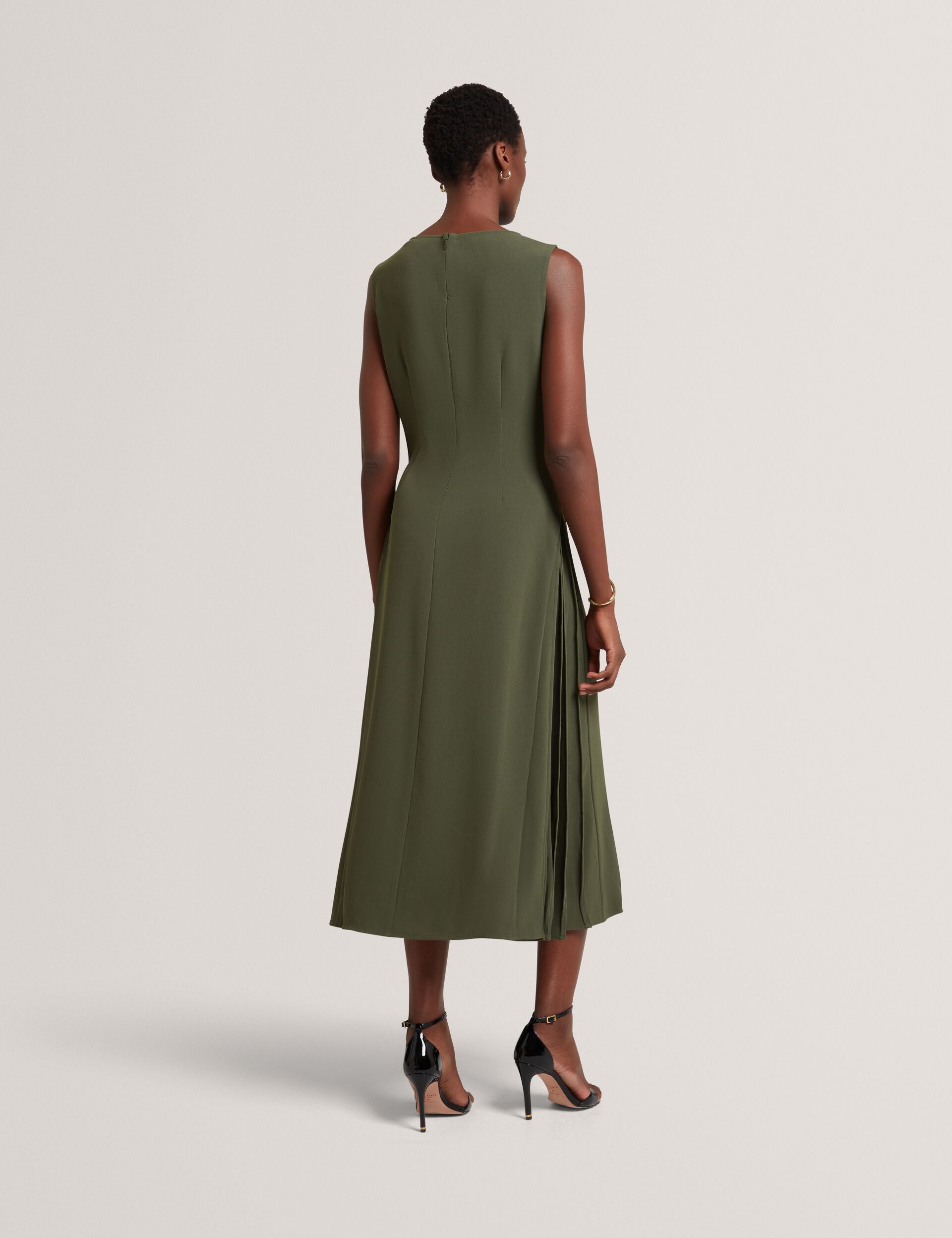 Pleat Detail Sleeveless Column Midi Dress