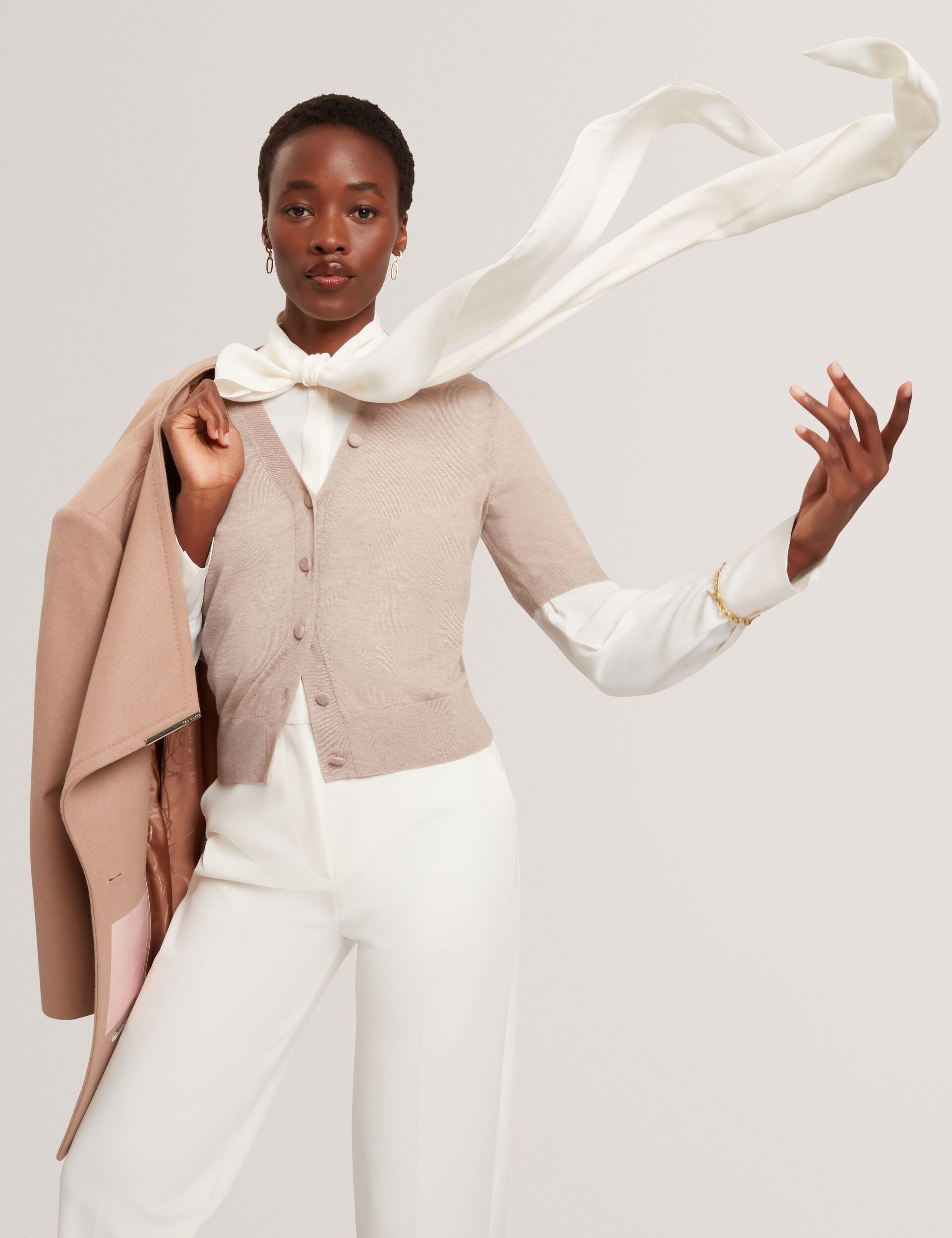 Made from a luxurious merino wool blend with a touch of silk, the DAZLIA short sleeve cardigan is your transitional wardrobe hero. Cut to a cropped length, this chic basic pairs perfectly with high-waisted pieces.