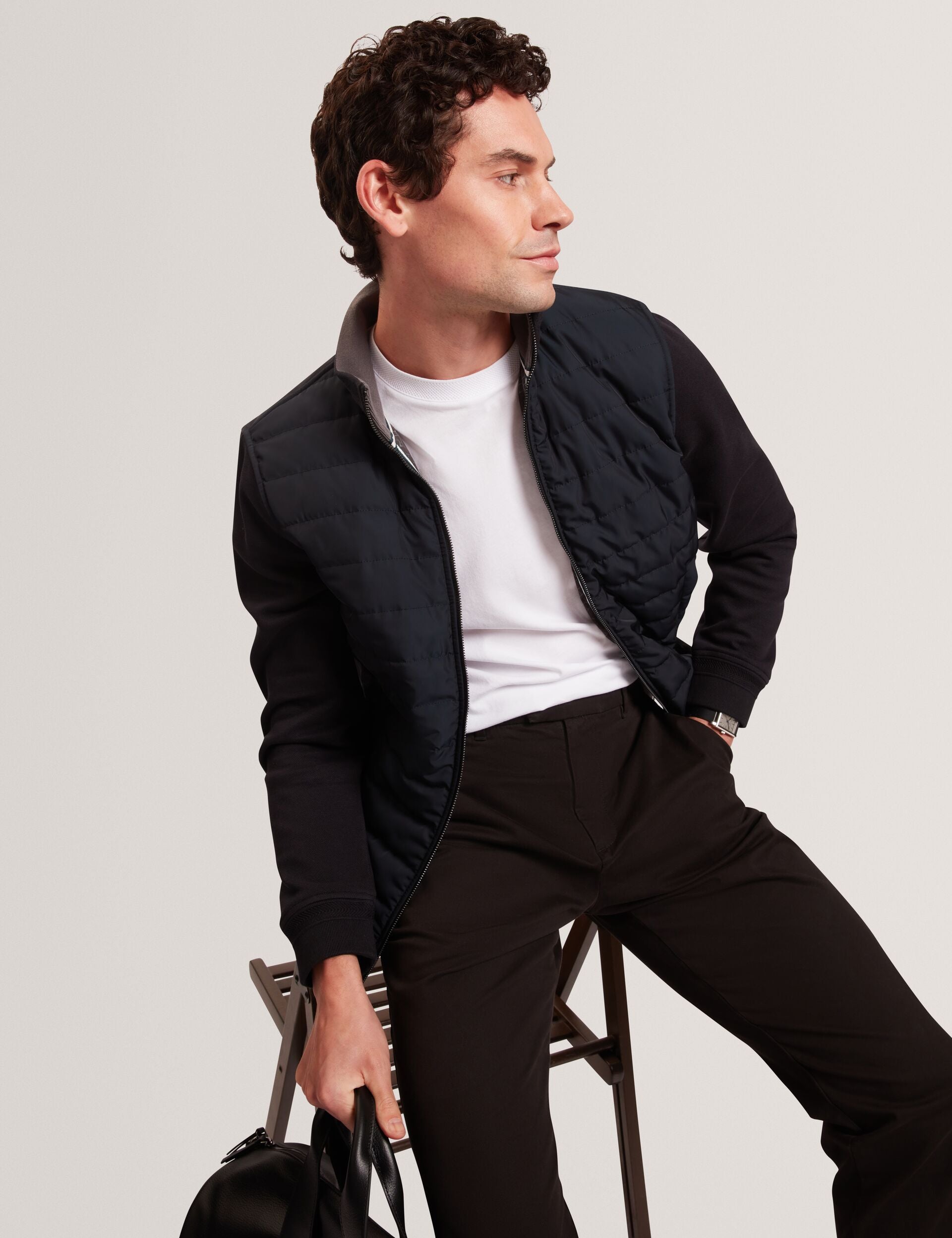 Blending a gilet with a light jumper, the DURANO jacket is the perfect layer to see you through the seasons. The knit fabric is warm yet breathable thanks to the cotton-stretch blend, topped with a quilted front panel and funnel neck that keeps out the chill.