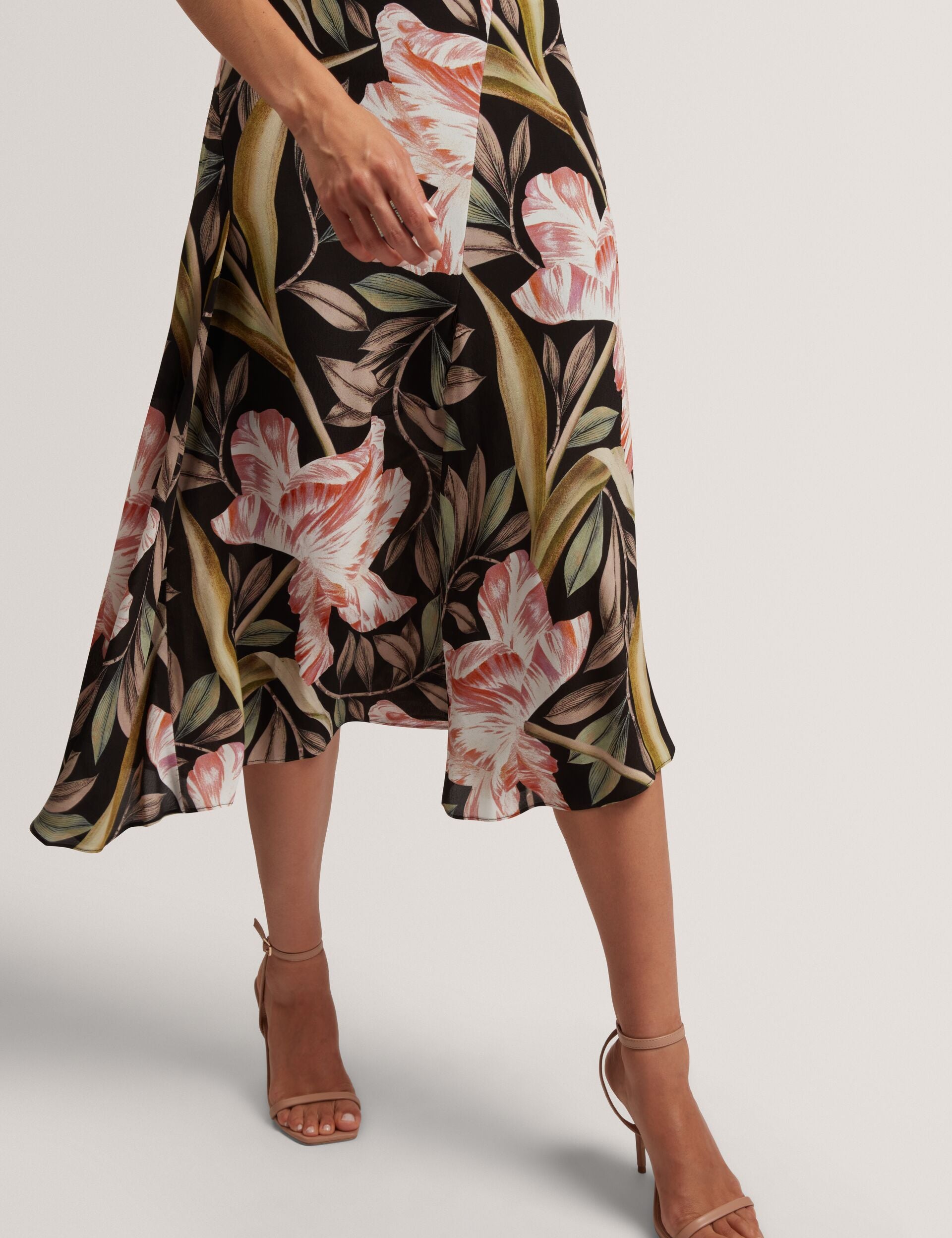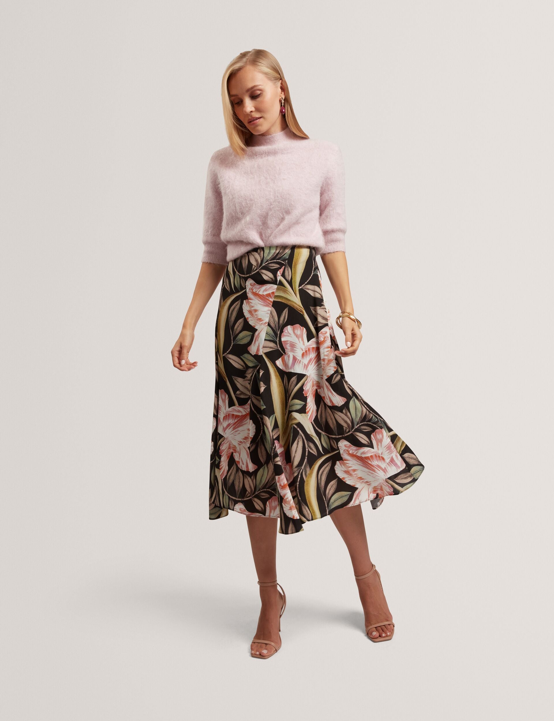 Statement print is married with a flowing silhouette to create the EHMILI midi skirt. The tulip botanical design feels bold yet delicate, whilst the godet panel design gives this skirt an elegant swish - it's feminine flair made for every occasion.