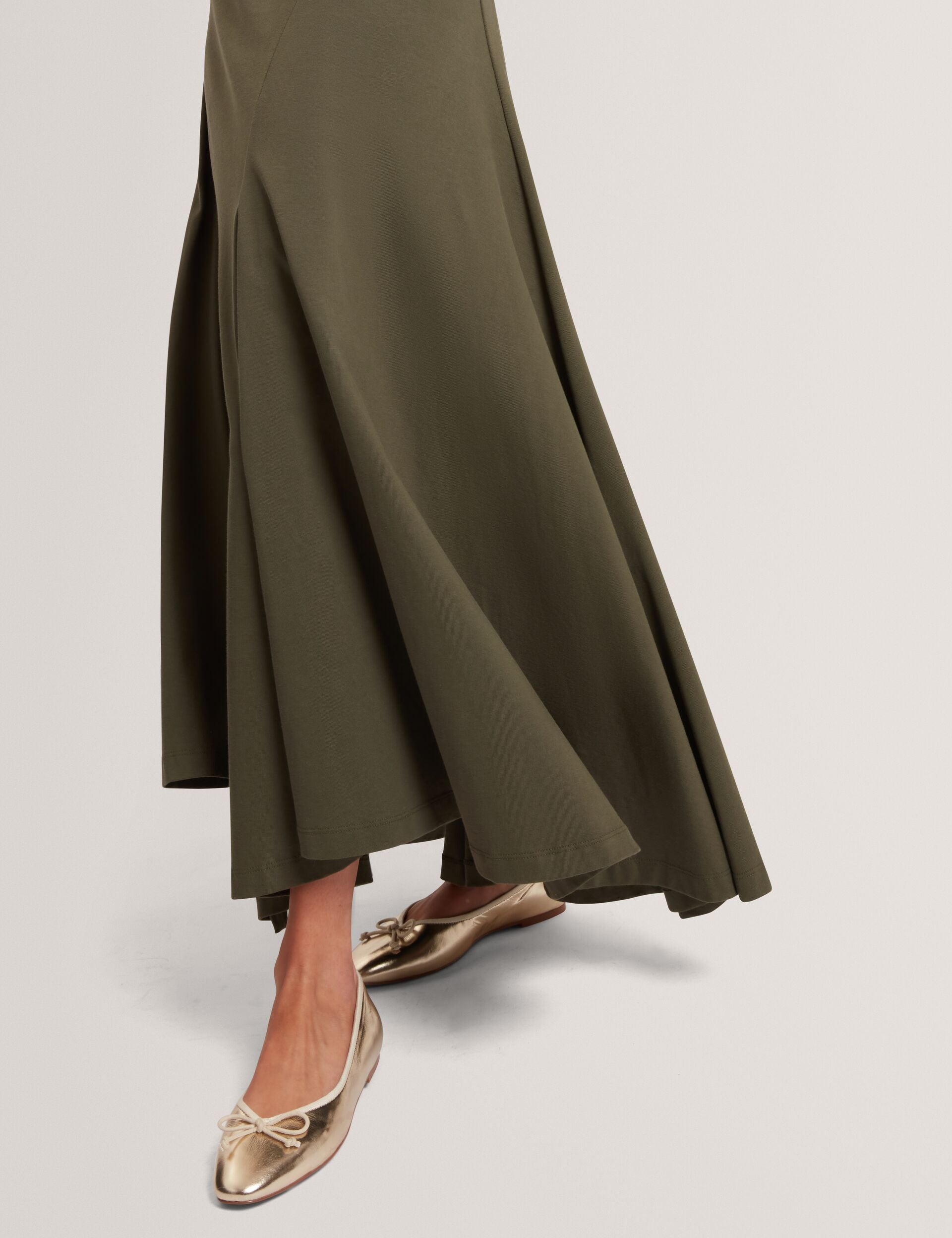 FUUSIA is an elevated take on the classic t-shirt dress, featuring curved panel details and a full circle skirt with gathered sections to create elegant movement. Made from a heavyweight jersey cotton, it's a comfortable staple that's designed to last.