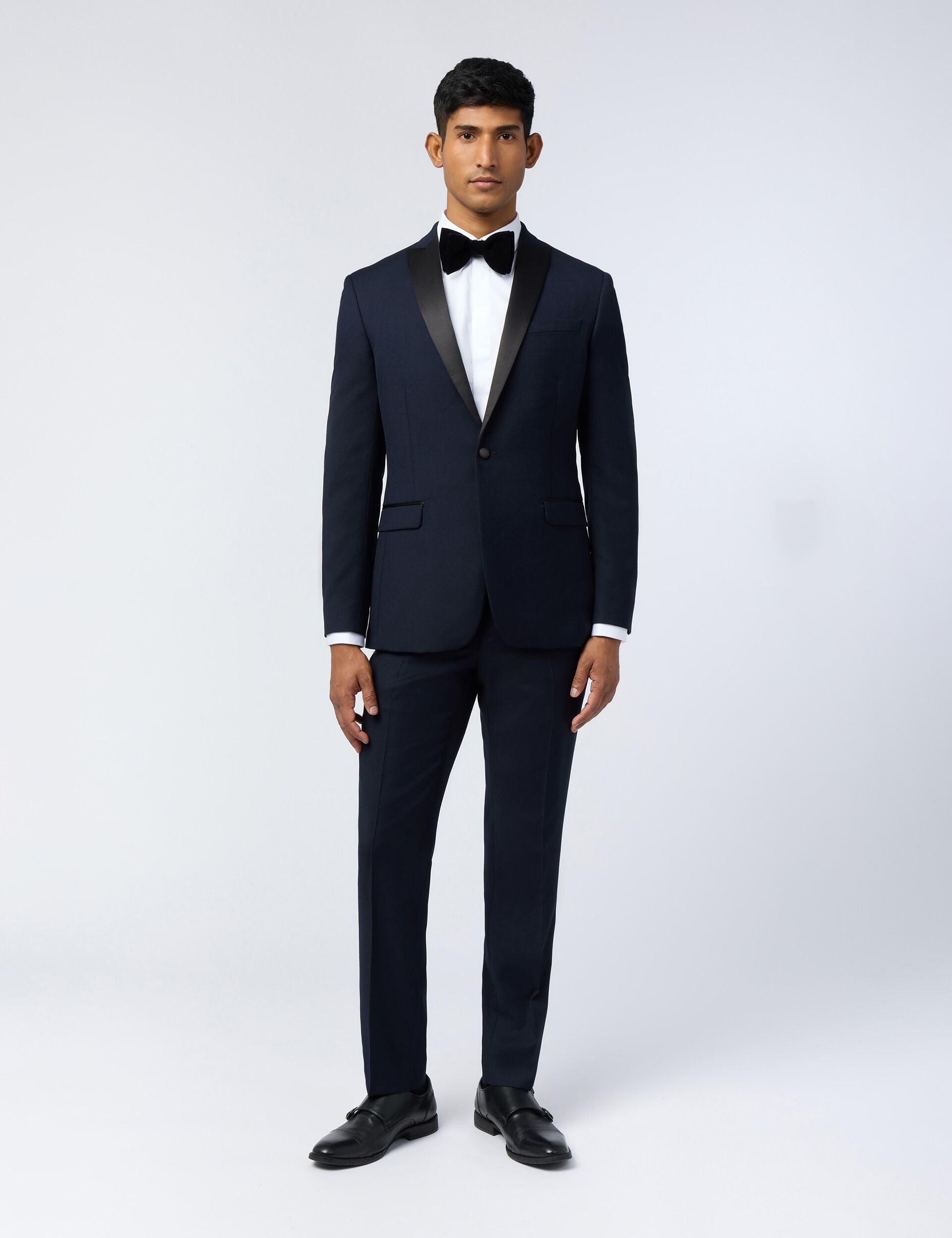 Navy Wool Rich Slim Fit Tuxedo Jacket