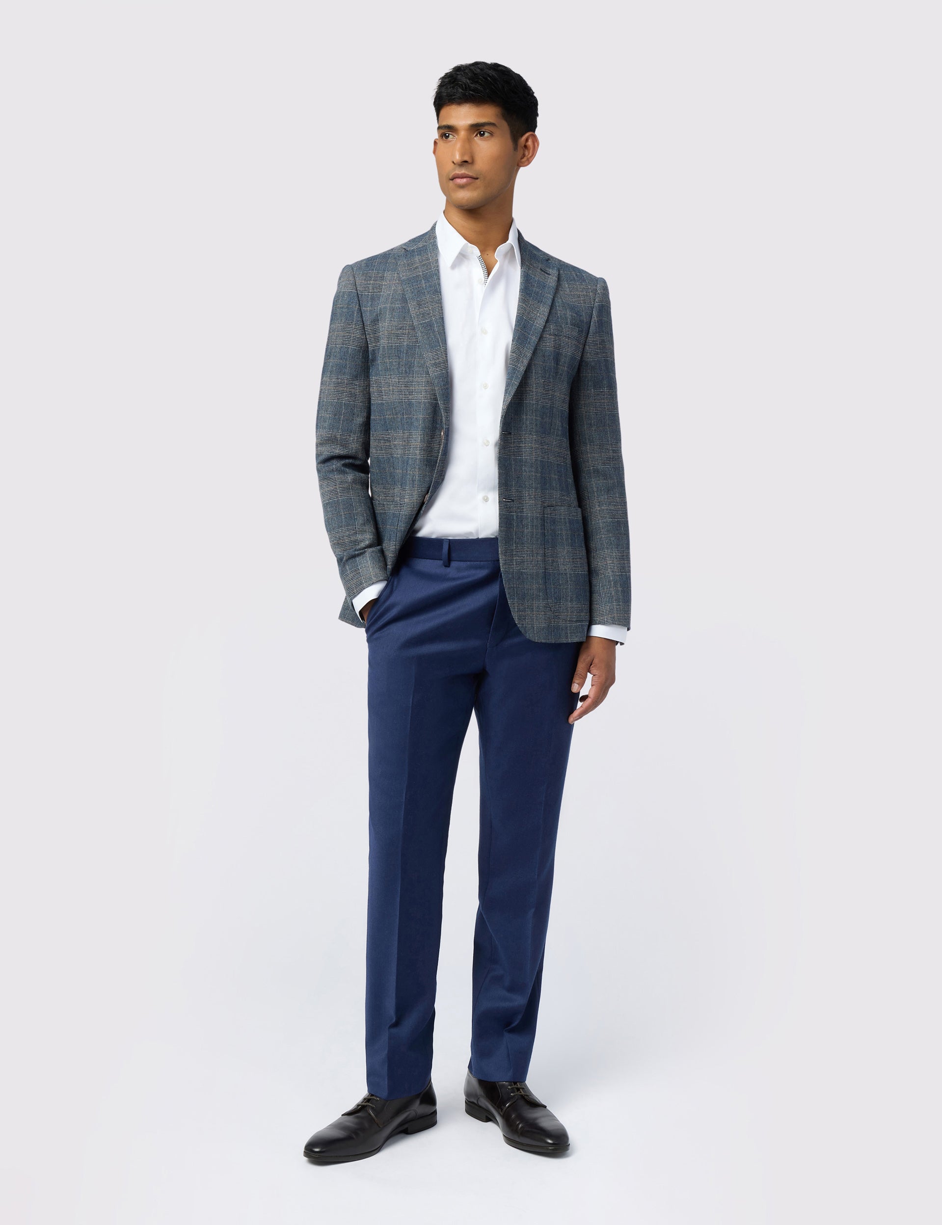 Featuring a stone-coloured glen check design on a navy base, the GALVIN slim fit blazer adds timeless flair to your smarter looks. The wool-rich blend features a comfortable stretch and natural breathability, and it's lined with an ornate bird print that doubles as a practical pocket square.