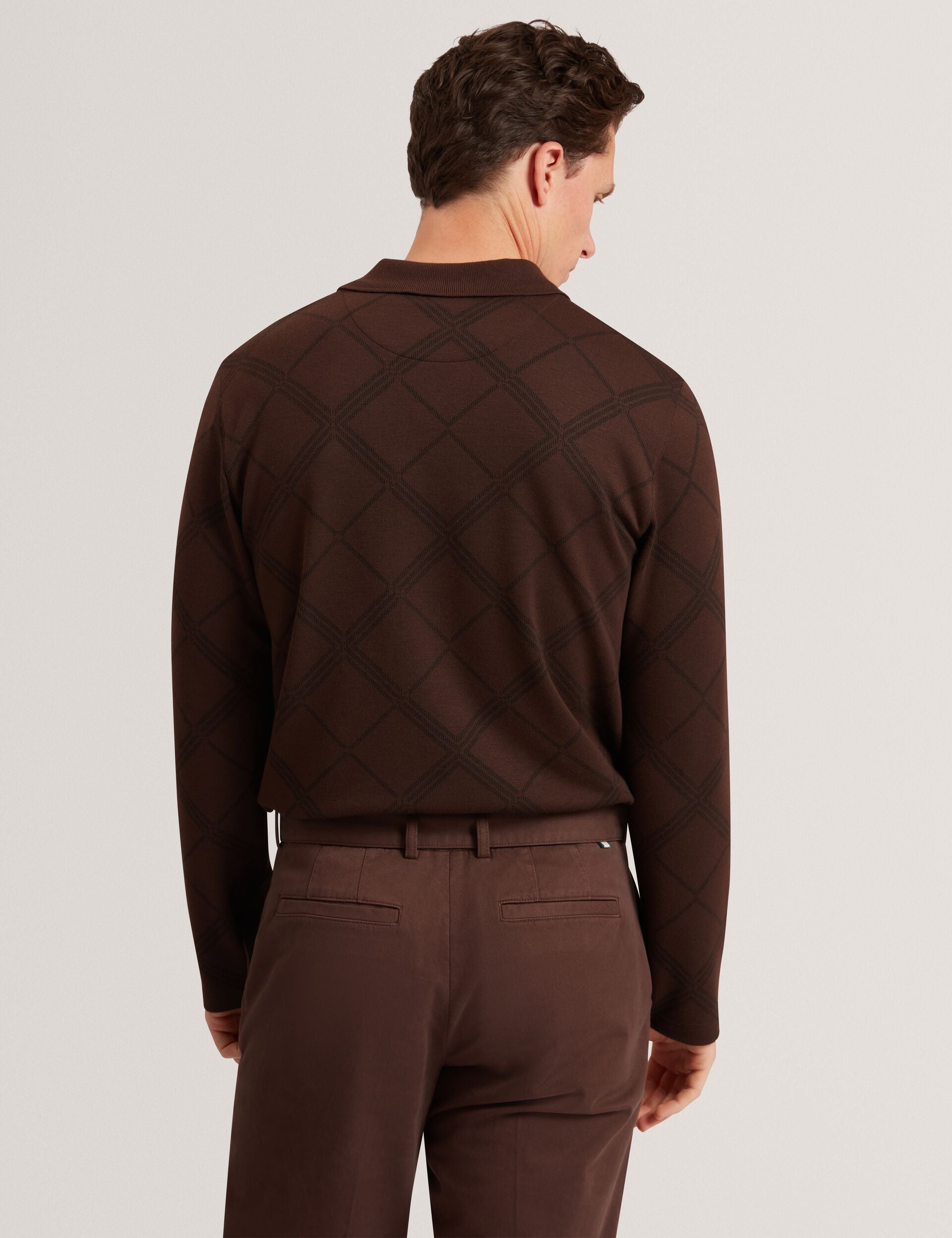 Argyle Knit Long Sleeve Polo Shirt