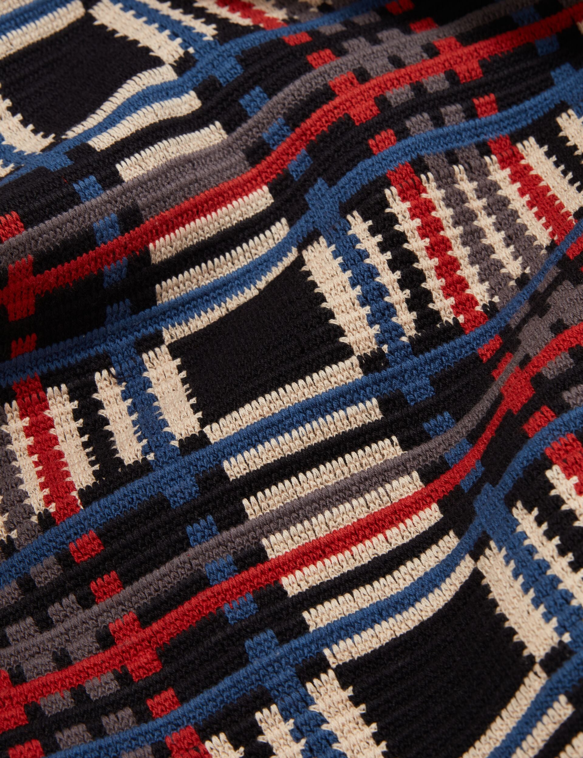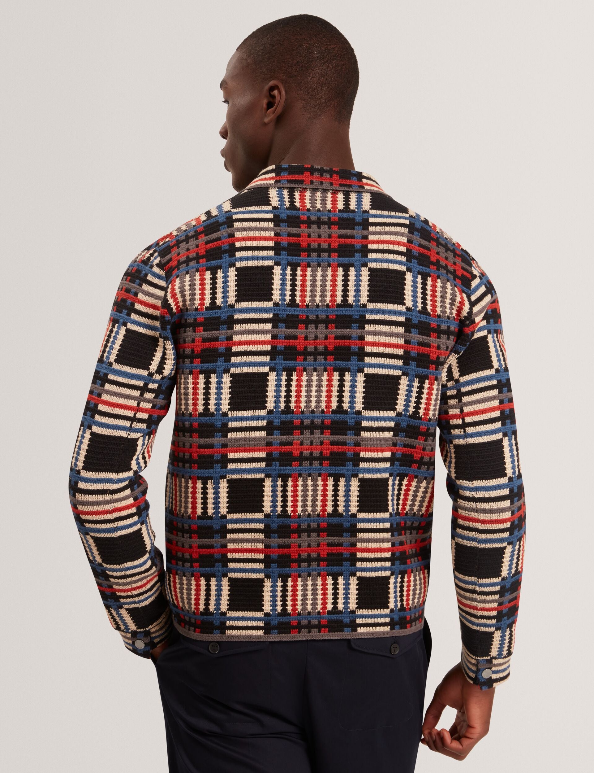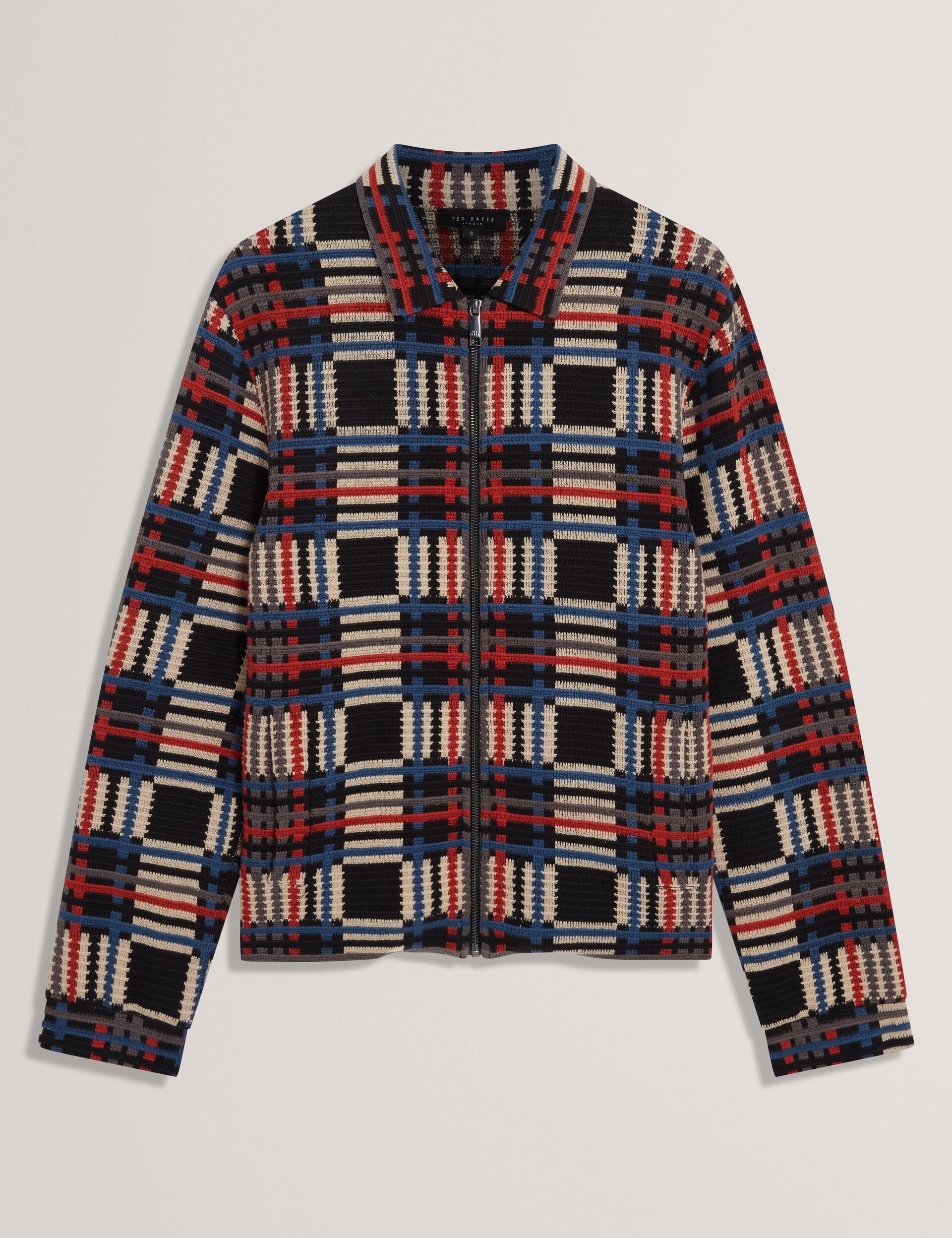 Boldy layer with the HENREIN knit jacket. Crocheted with a bold patchwork check design that feels suitably retro, we've added a classic collar and zip-through fastening to keep things smart and easy to style. Add it to a plain tee and classic jeans, and you've got an everyday statement.
