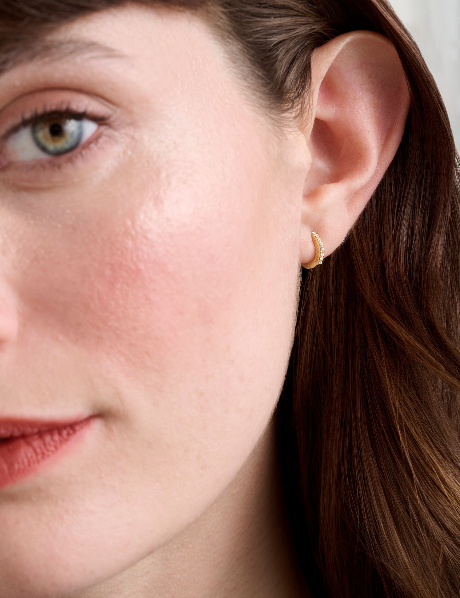 These HETTIEG earrings are the contemporary way to do sparkle, designed with a row of clear crystals on a gold-tone huggie hoop that's simple yet still glam. Perfect for bringing subtle shine to your everyday style.