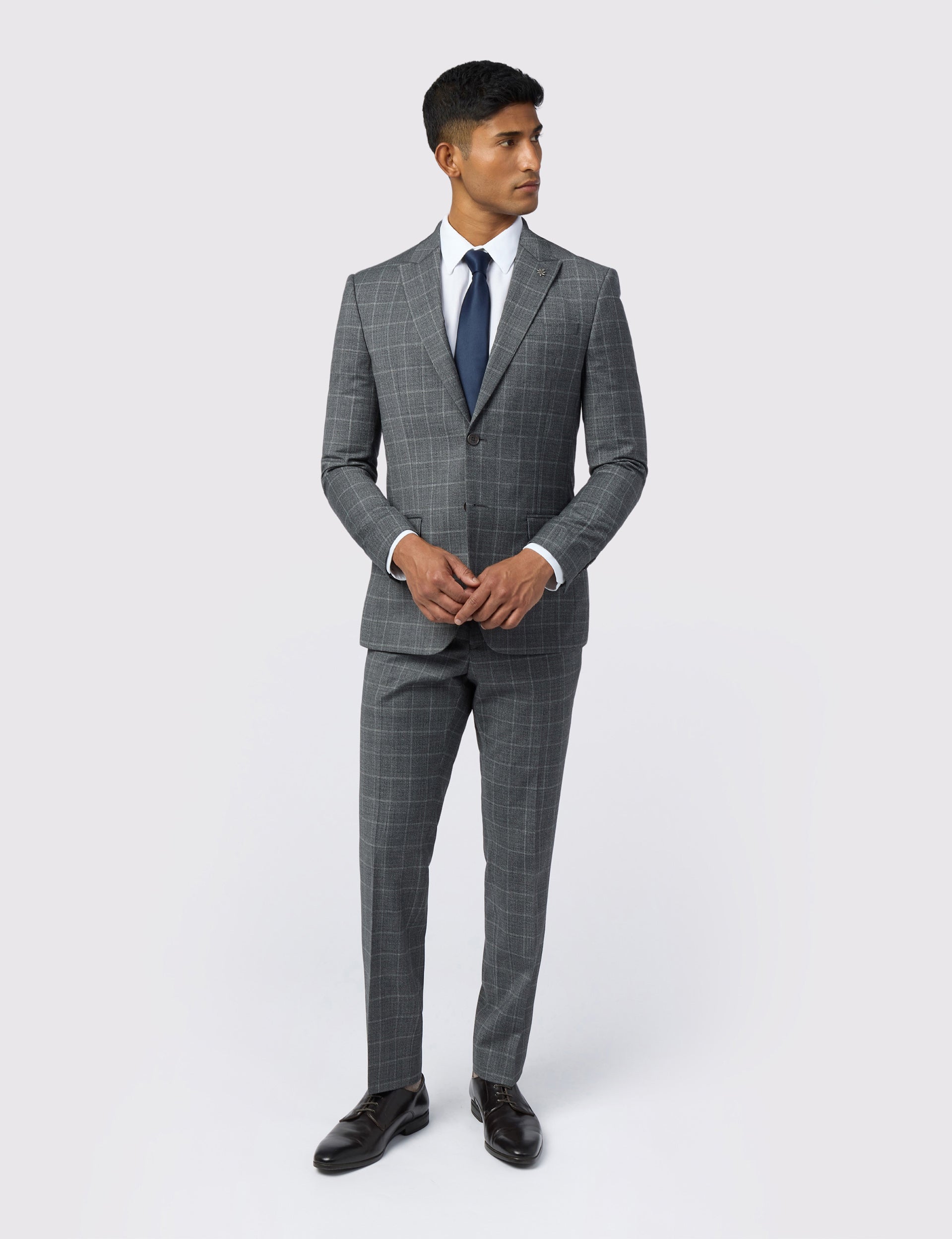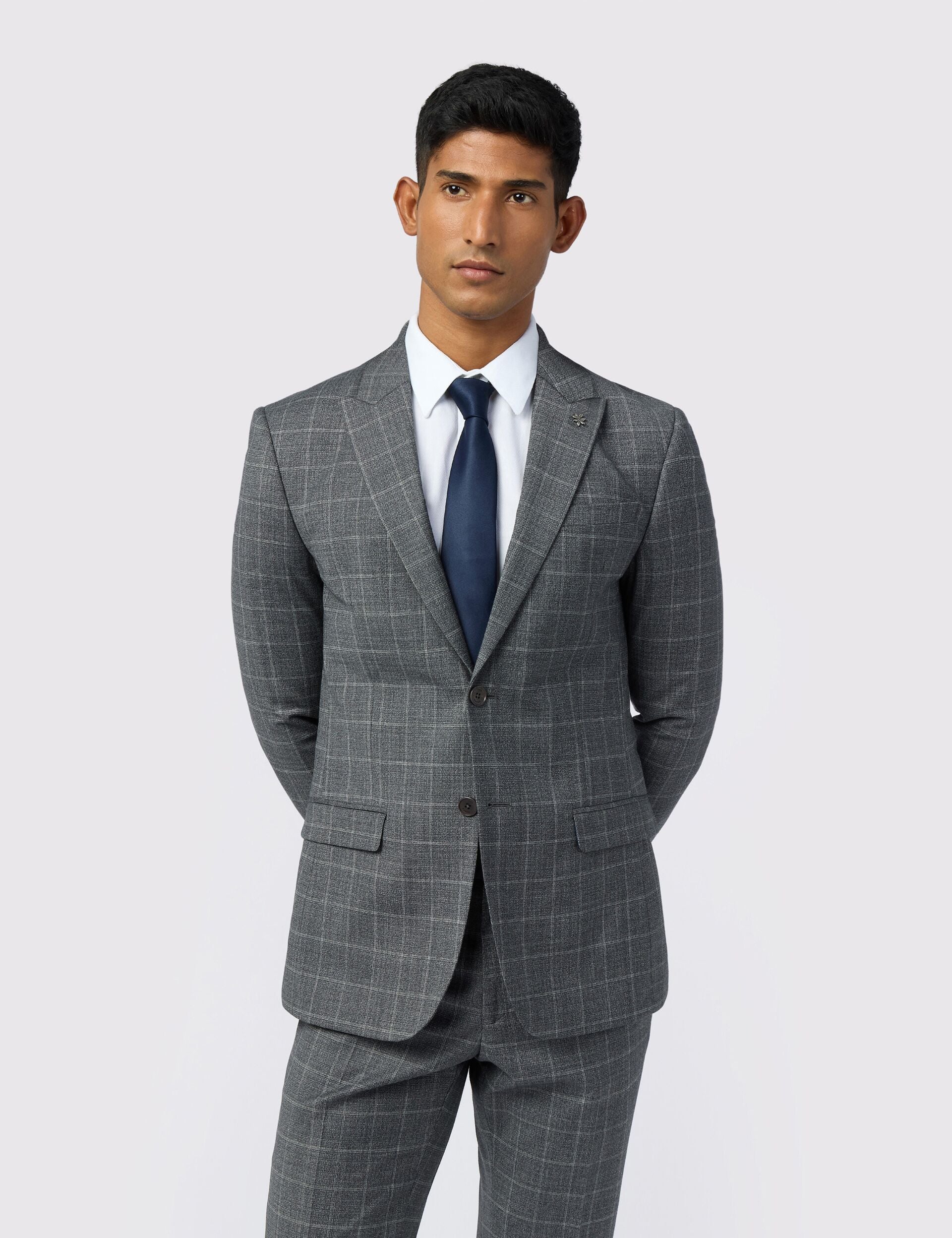 Featuring a grey windowpane check and subtle texture, the HILSON suit jacket is timeless tailoring that stands out. It's crafted from a high-performance wool blend that's water resistant and naturally warm, with a hint of stretch that keeps its slim fit comfortable.
