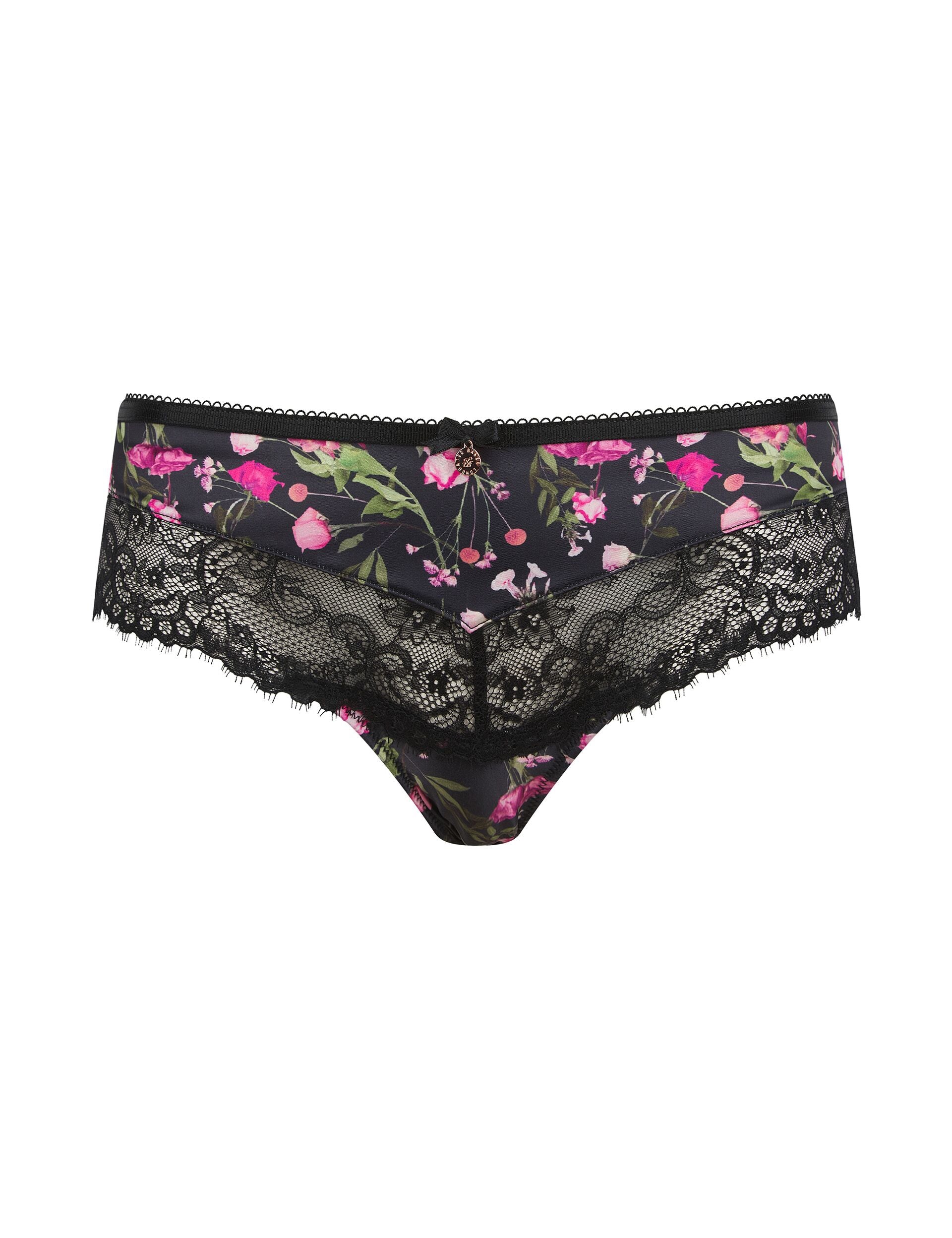 Sultry and sophisticated, these HOPE brazilian knickers feel as good as they look. A vibrant floral design is printed onto a sleek satin front, complemented by delicate lace panels and a sheer mesh back. The mid-rise fit is made to flatter, crafted from fabric that's soft and breathable for unending comfort.