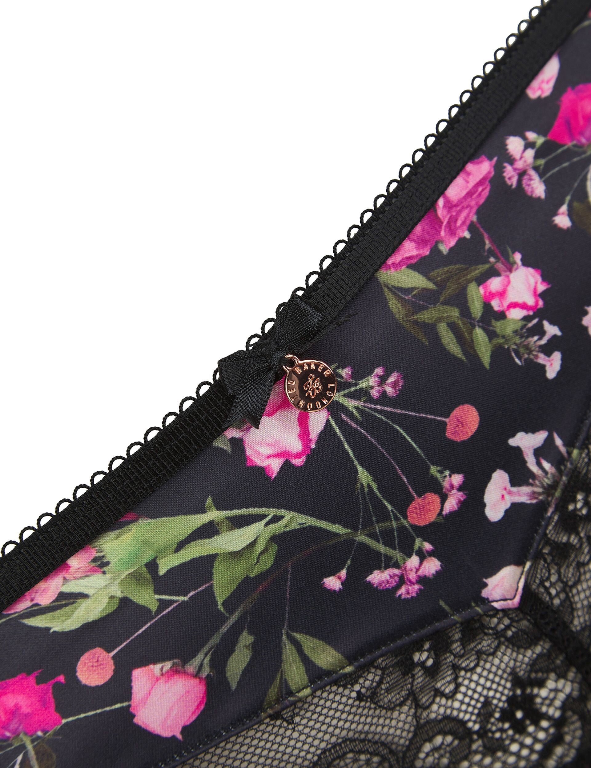 Floral Print Lace Panel Brazilian Knickers