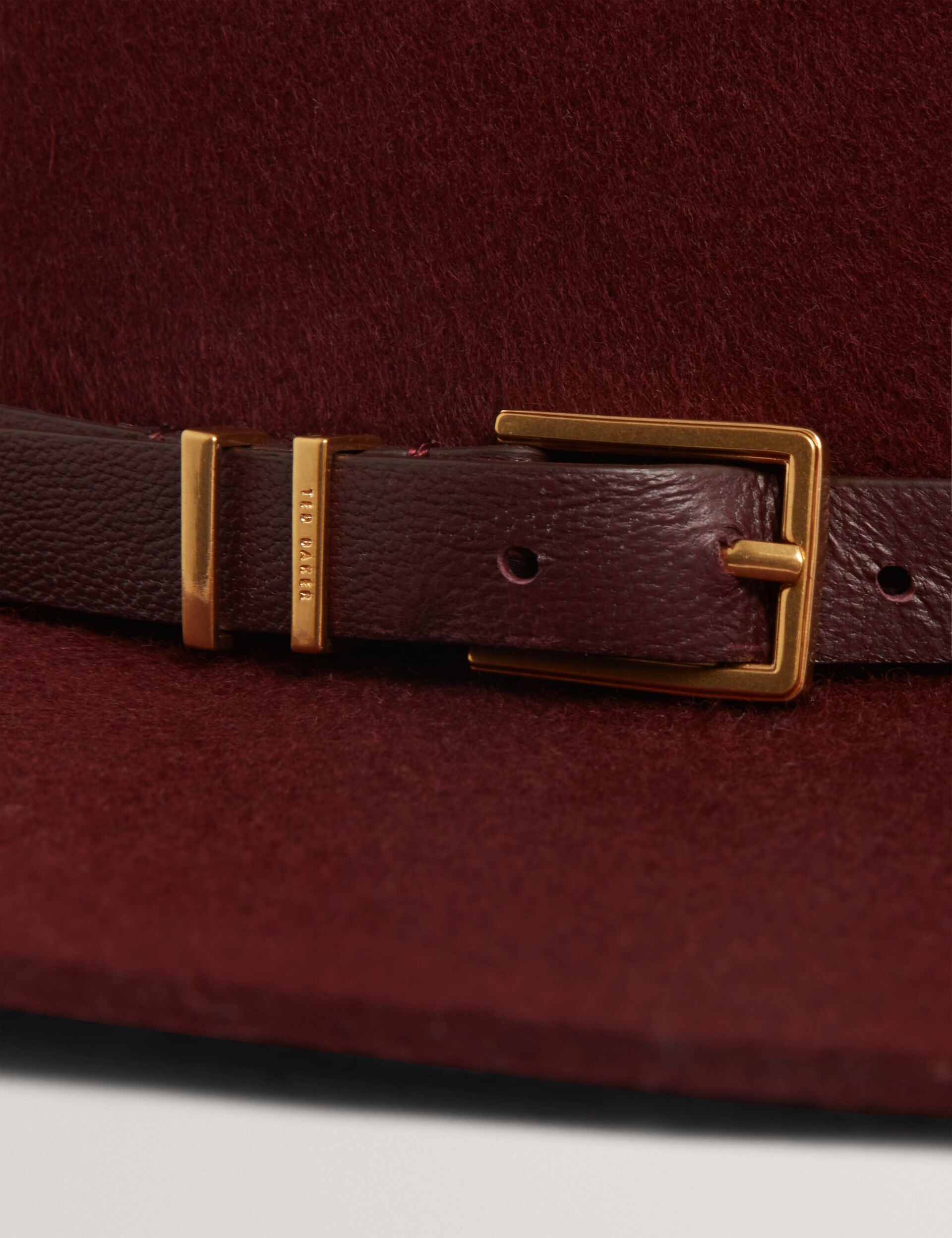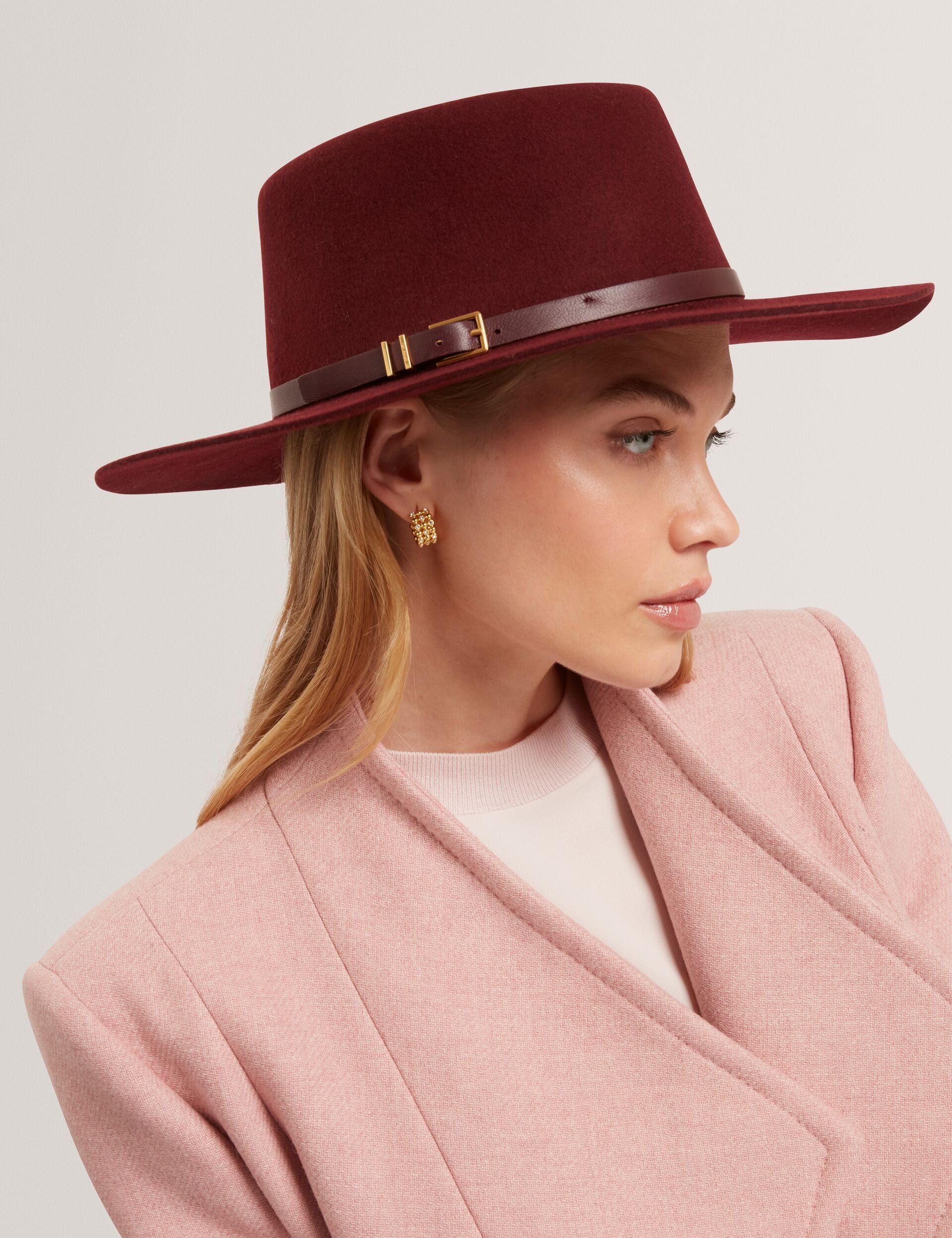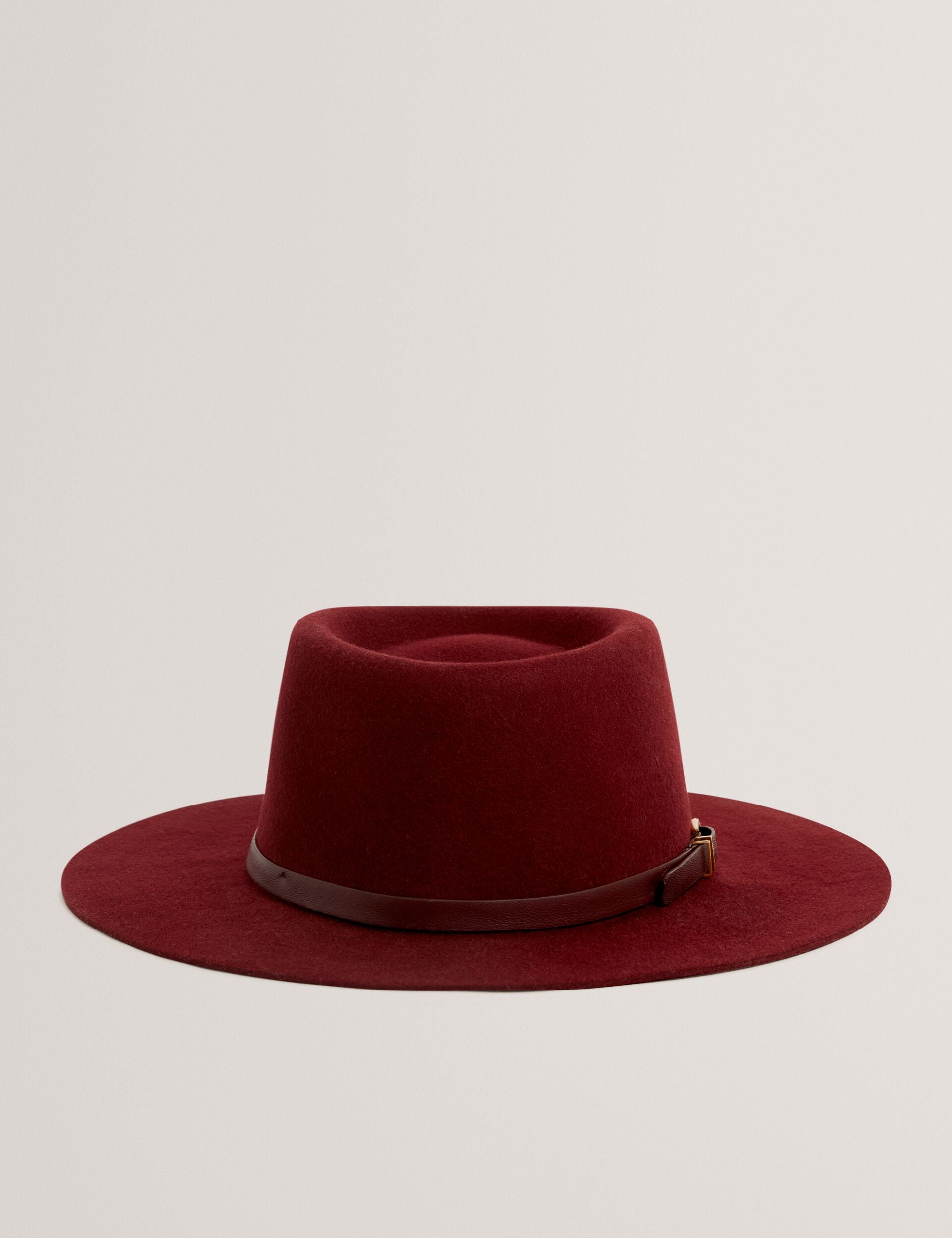 Shell: 100% Wool; Sweatband: 100% Polyester; Trim: 100% Bovine leather