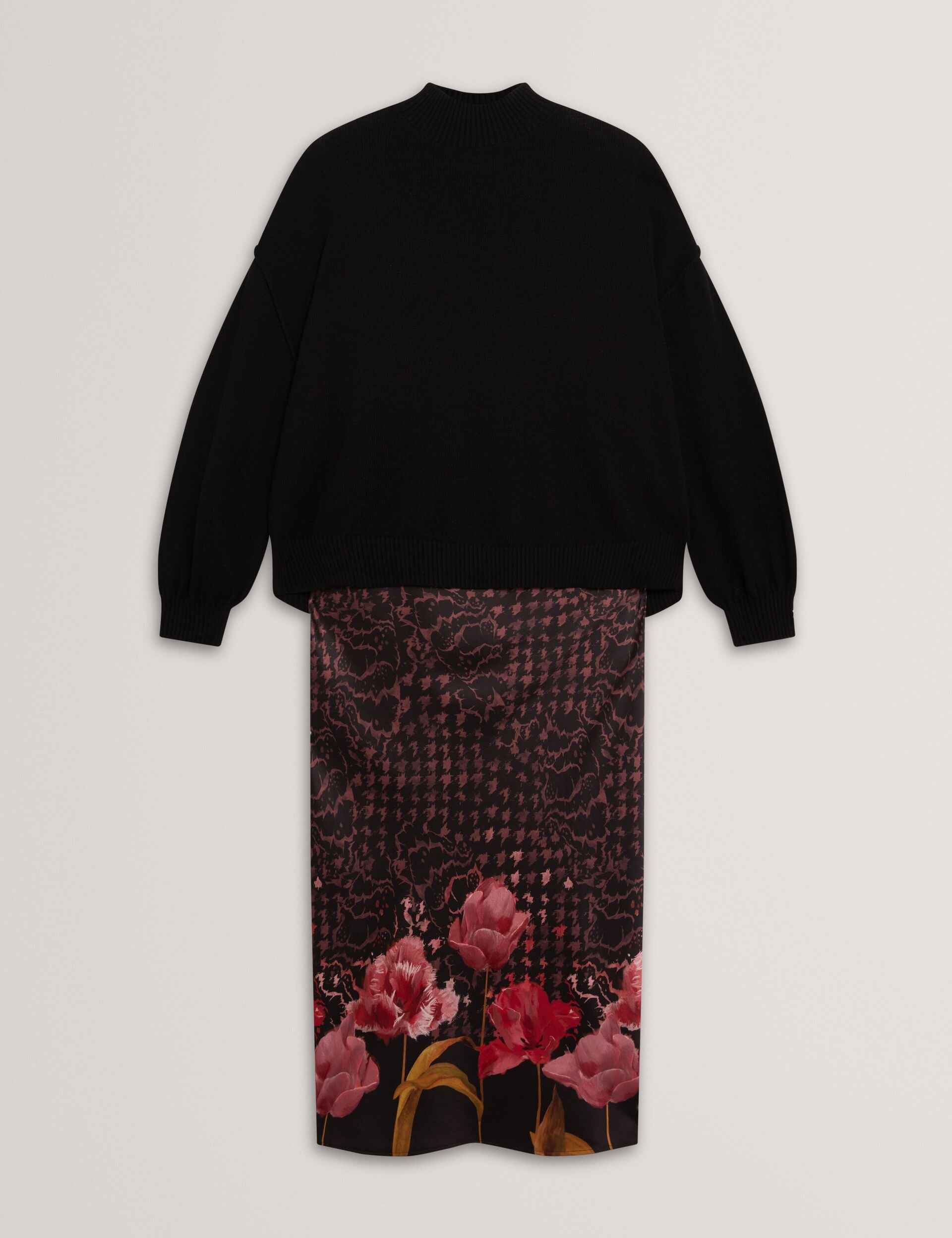 2-in-1 Floral Print Slip Dress With Knit Jumper