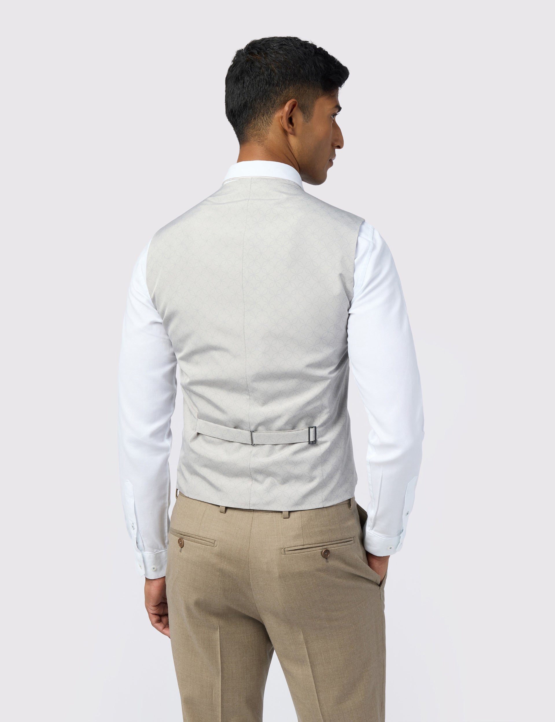 Add modern neutral colour to your suiting this season with the LARKIN waistcoat. Made from a soft flannel fabric in an oatmeal shade, this slim fit piece layers comfortable under tailored jackets, and is naturally breathable thanks to its stretch-wool blend.
