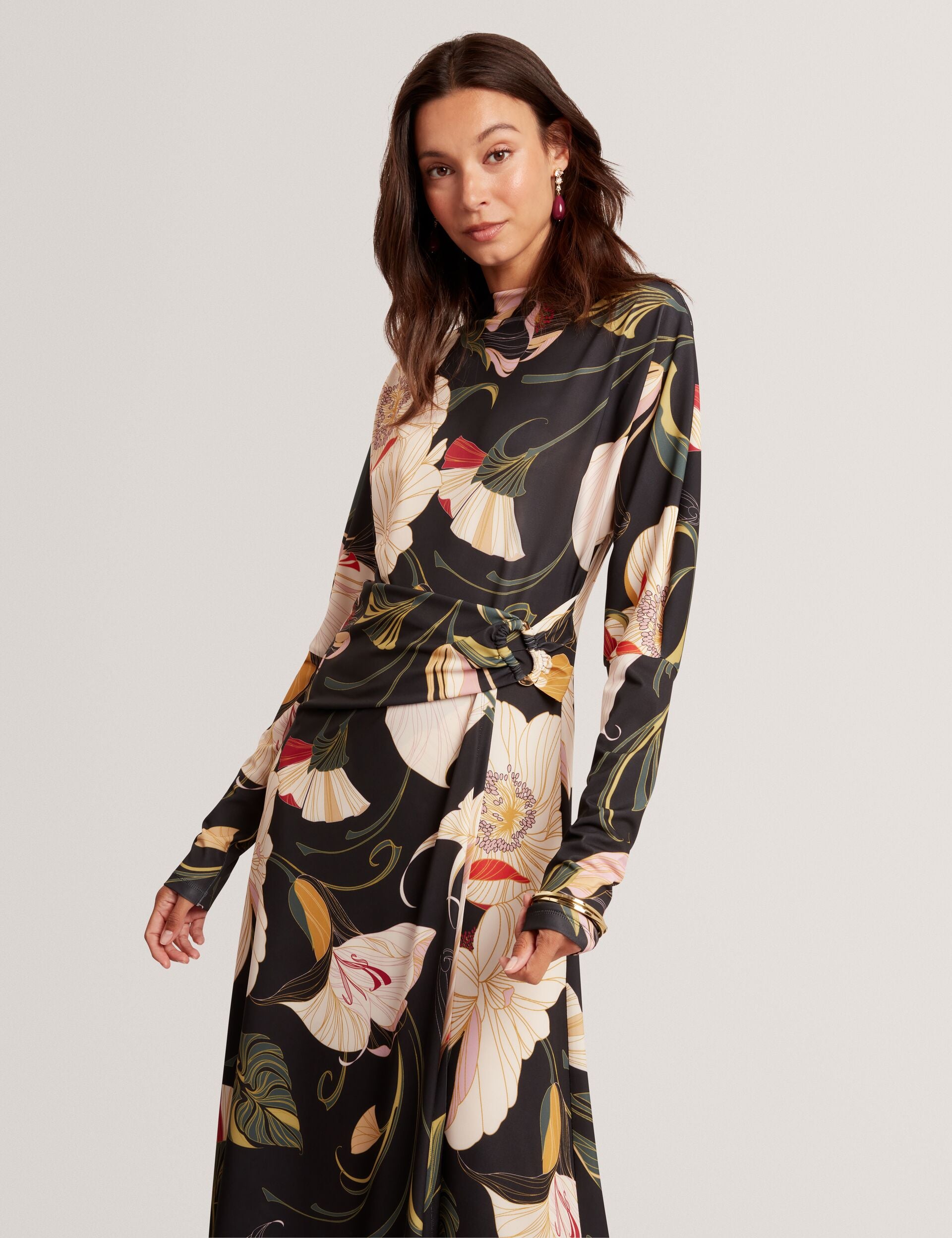 - Gathered waist with hardware ring