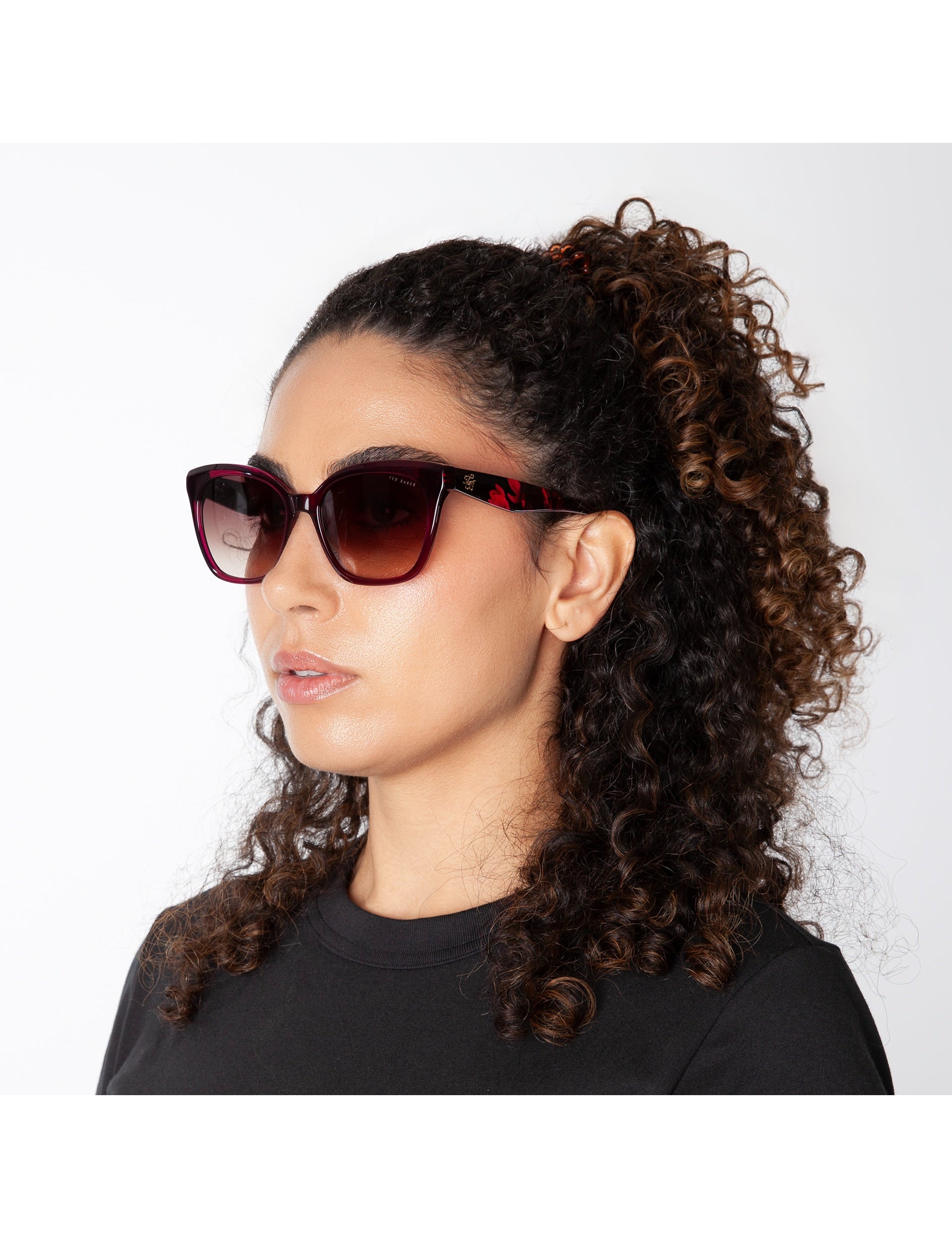 - Dark-base floral print temples