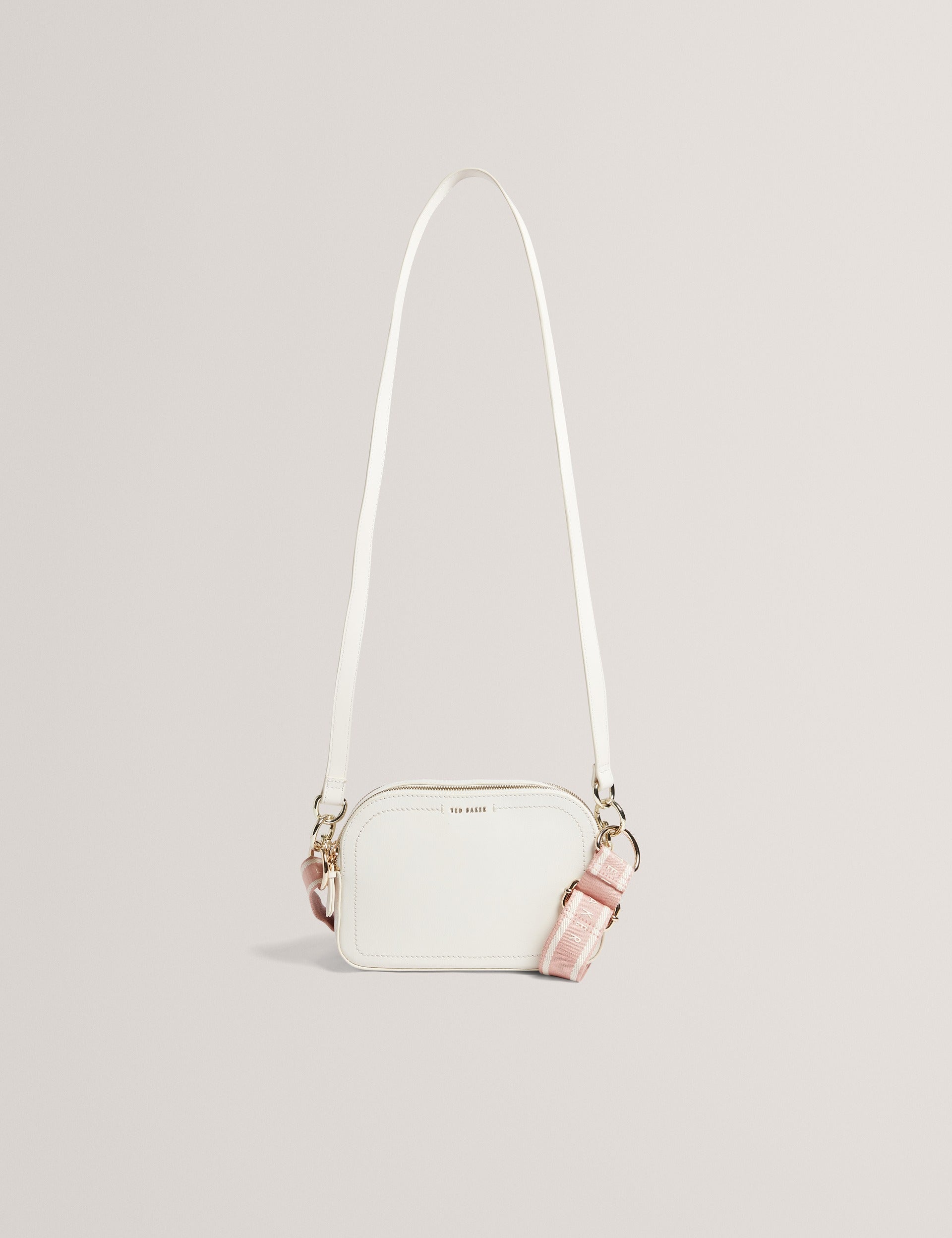 Function meets fashion in the form of our LUCEELE crossbody camera bag. Crafted from luxe grained leather with dual zipped compartments, this go-to style comes with changeable bold logo and tonal leather straps for hands-free ease from day to night.