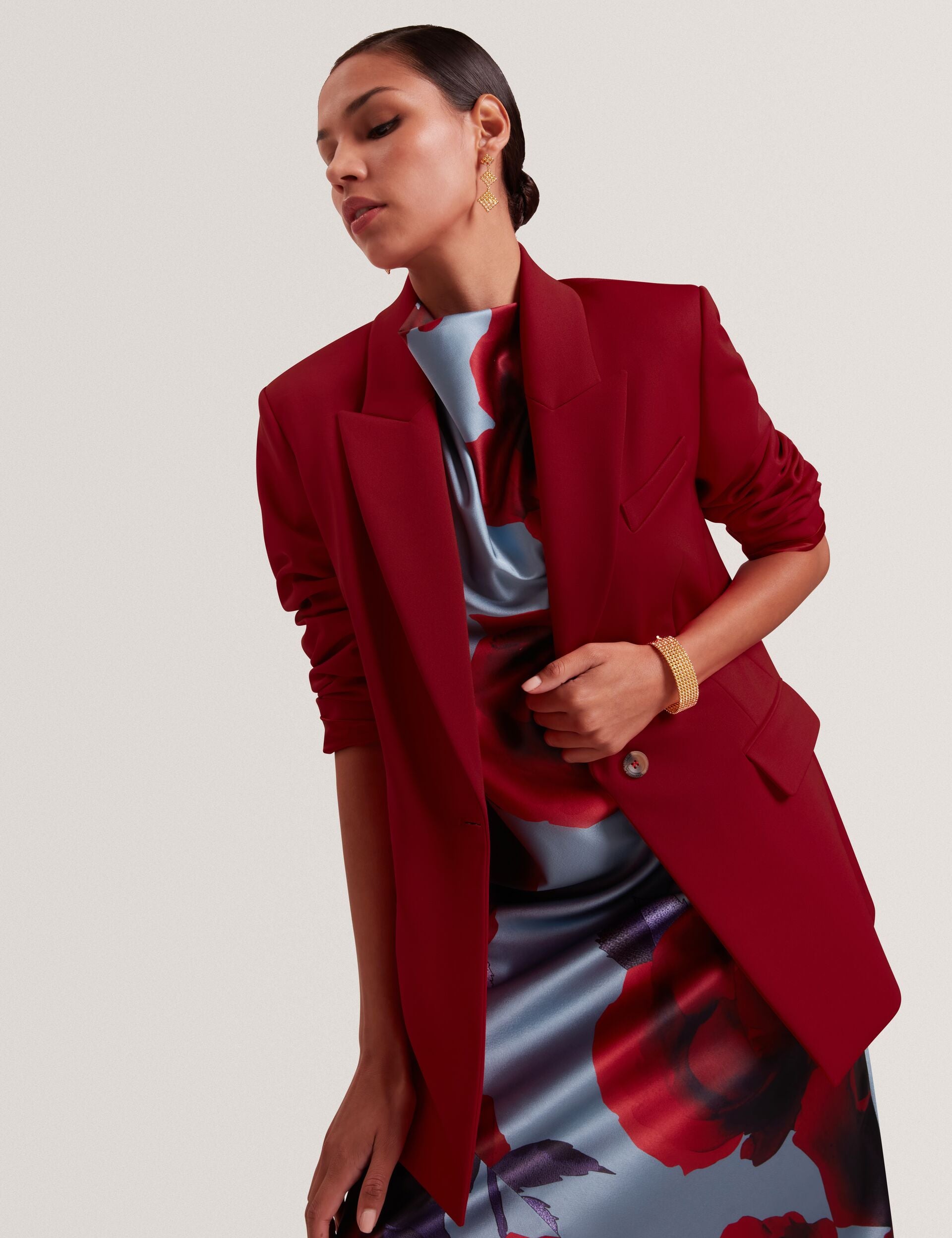 Timeless tailoring designed in a rich shade of dark red, the LYMA blazer is a layering must-have. The relaxed fit is ready to wear over work blouses and casual tees, complete with structured shoulders and peaked lapels that give this jacket its power.