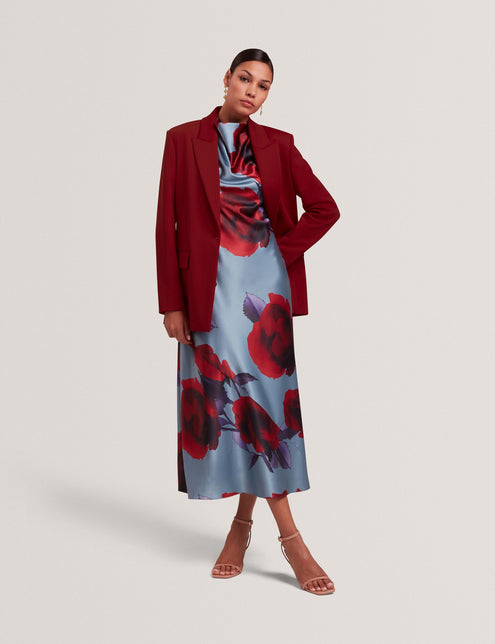 The LYMAT tailored trousers deliver polished style with their modern flared silhouette, crafted from a smart yet comfortable wool twill in a bold shade of dark red. Wear it with the matching LYMAT blazer for that full powersuit look.