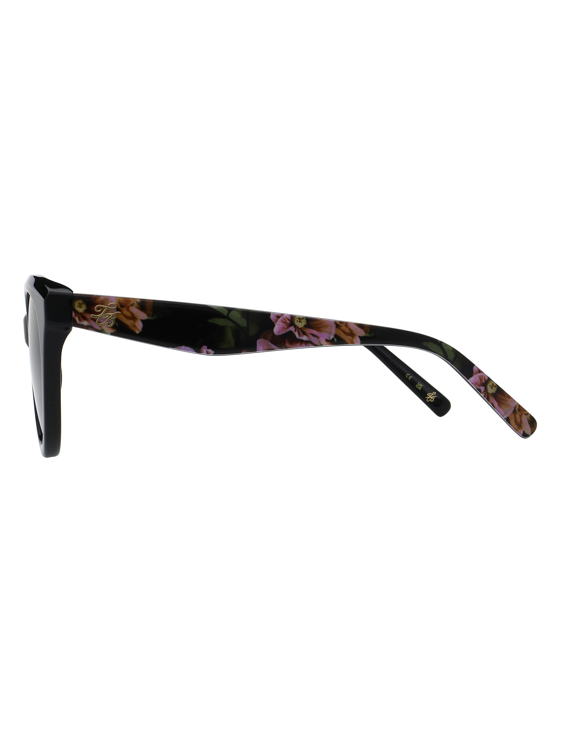 - Dark floral print temples