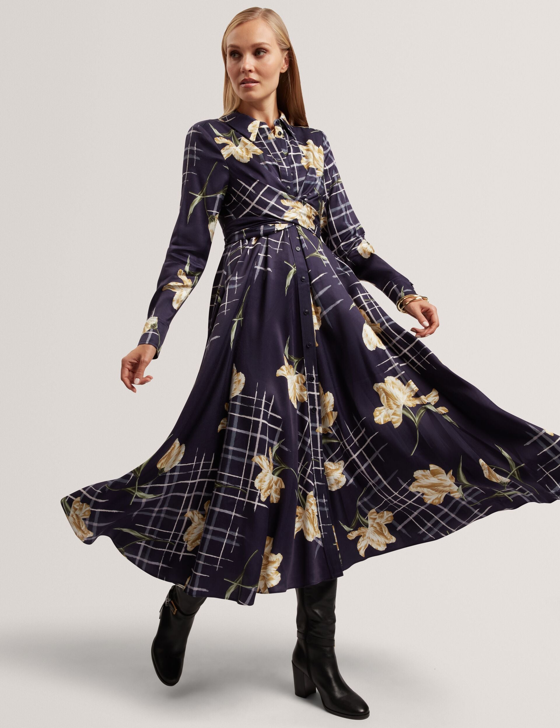 MAYLIA is a bold take on the classic shirt dress. Soft yellow tulips are added to a faded check design for a print that boasts feminine flair, whilst a wrap-over tie at the waist cinches you in for the most flattering silhouette possible.