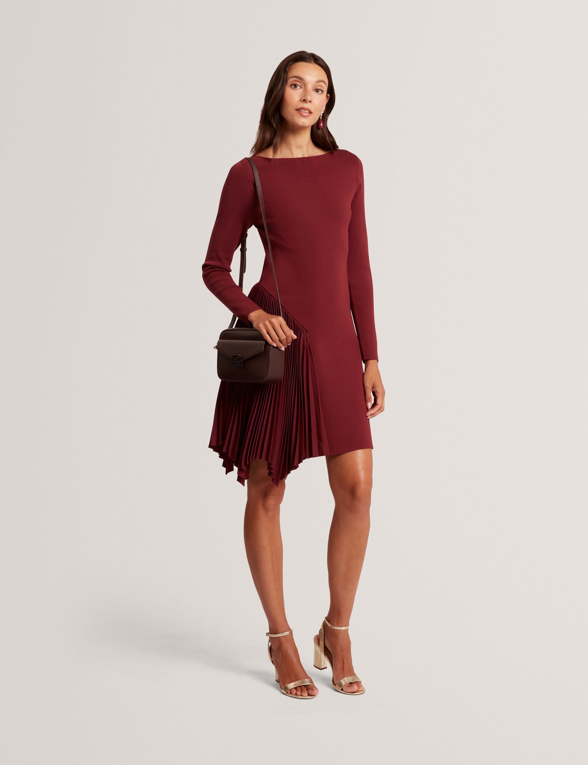 Cut to flatter, made to move. The NALREE mini dress is made from a structured knit fabric that sculpts your shape, whilst the pleated asymmetric panel at the side brings texture and an elegant swish to this timeless piece.