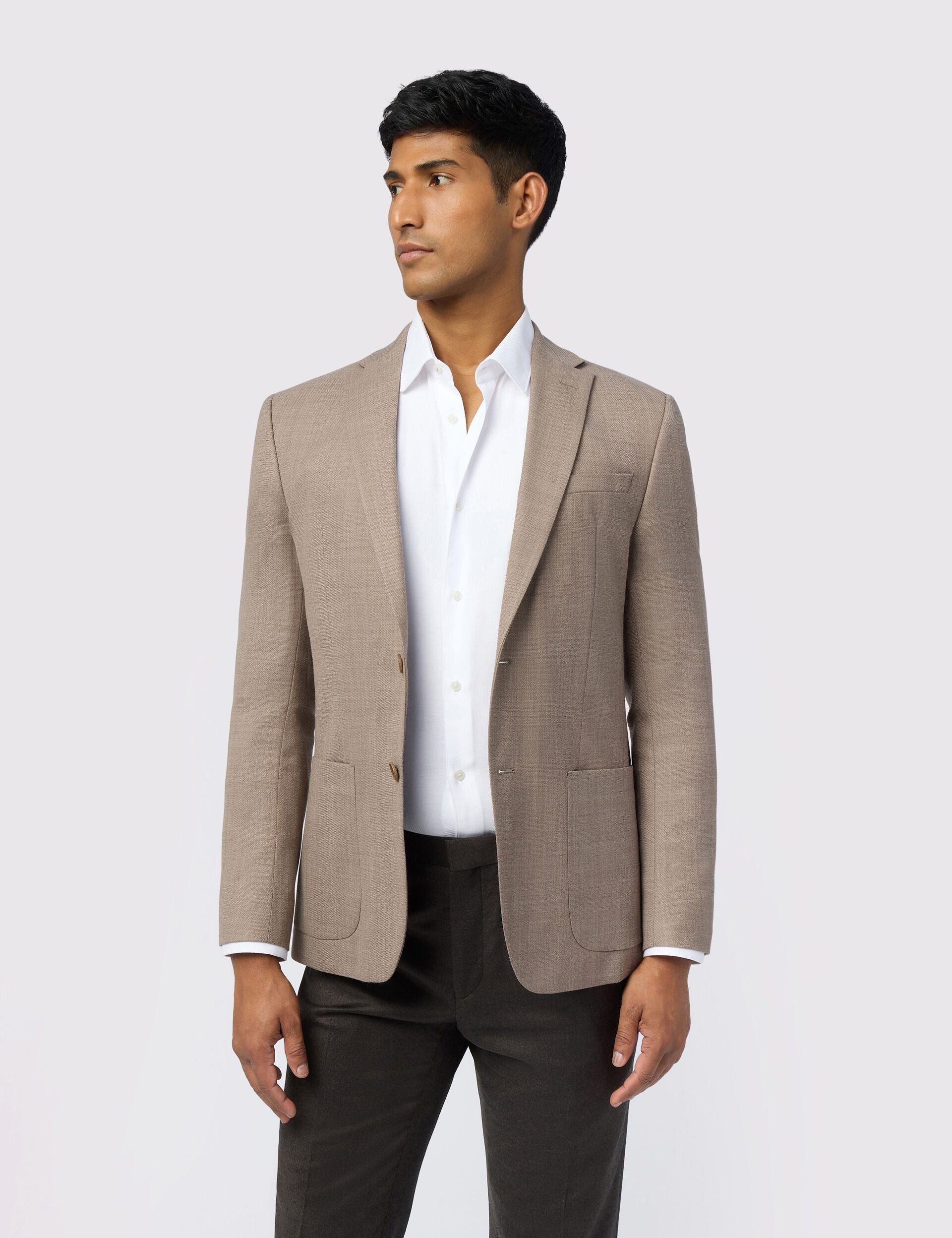 Designed with a hopsack woven texture, the ORAM taupe blazer adds depth to your smart style. Cut in a slim fit with a structured shape, it pairs easily with suit trousers and classic jeans. The wool-rich blend features a hint of stretch for comfort throughout the day.