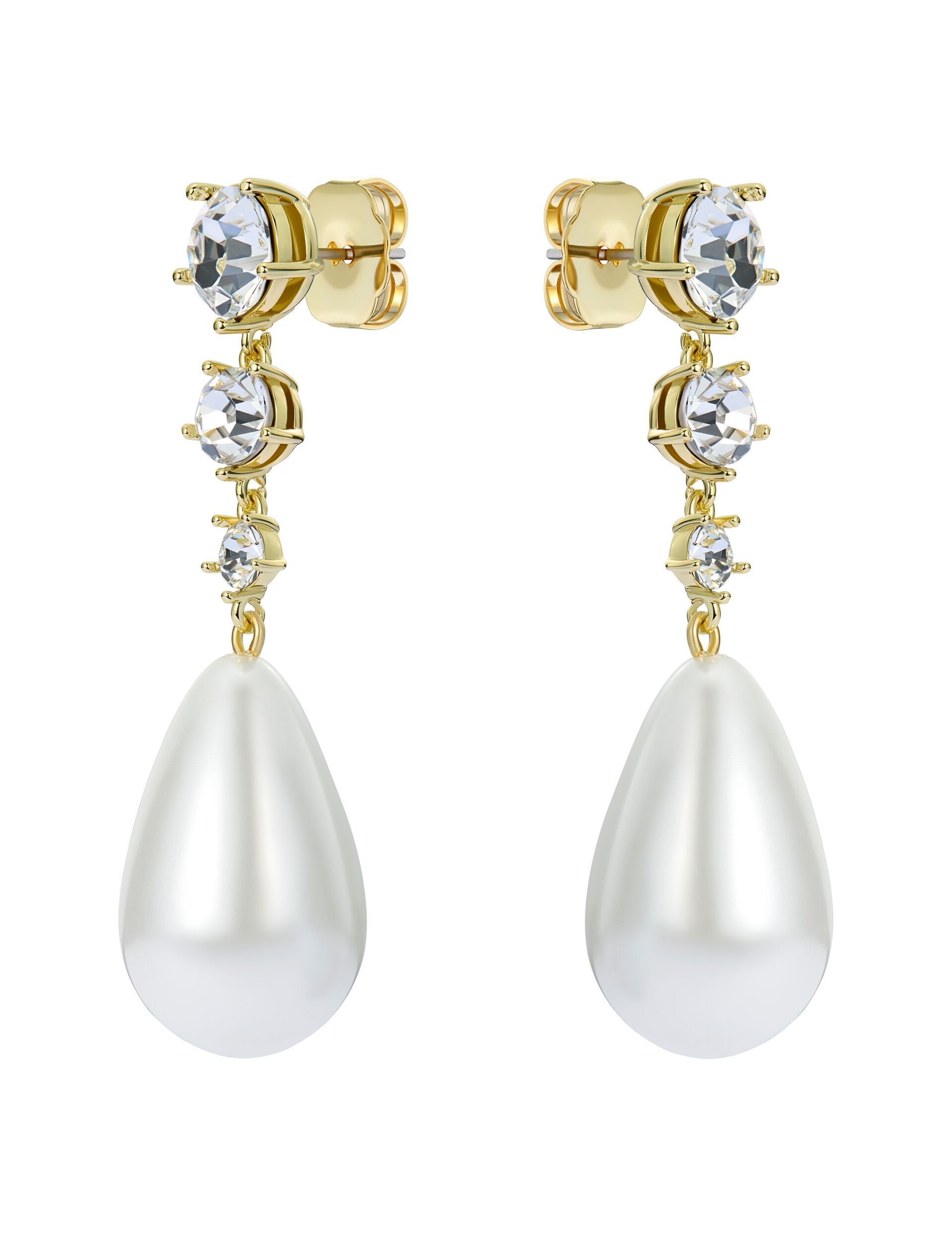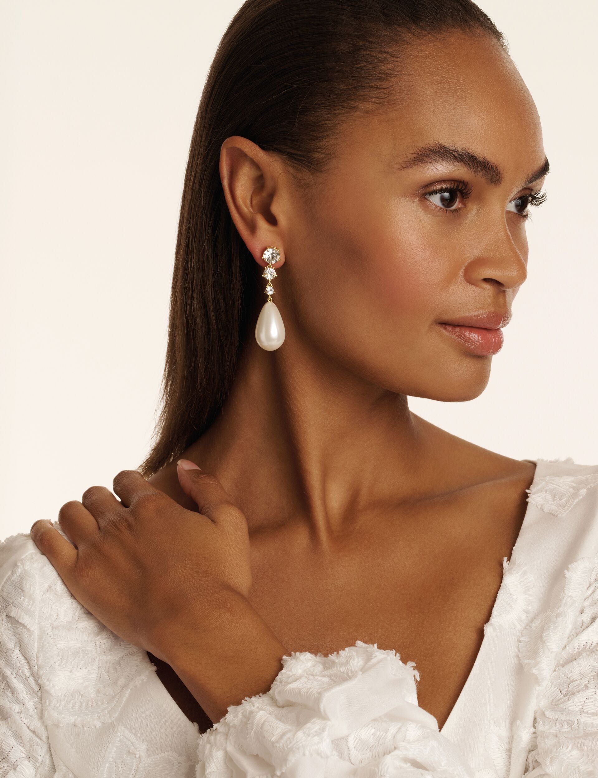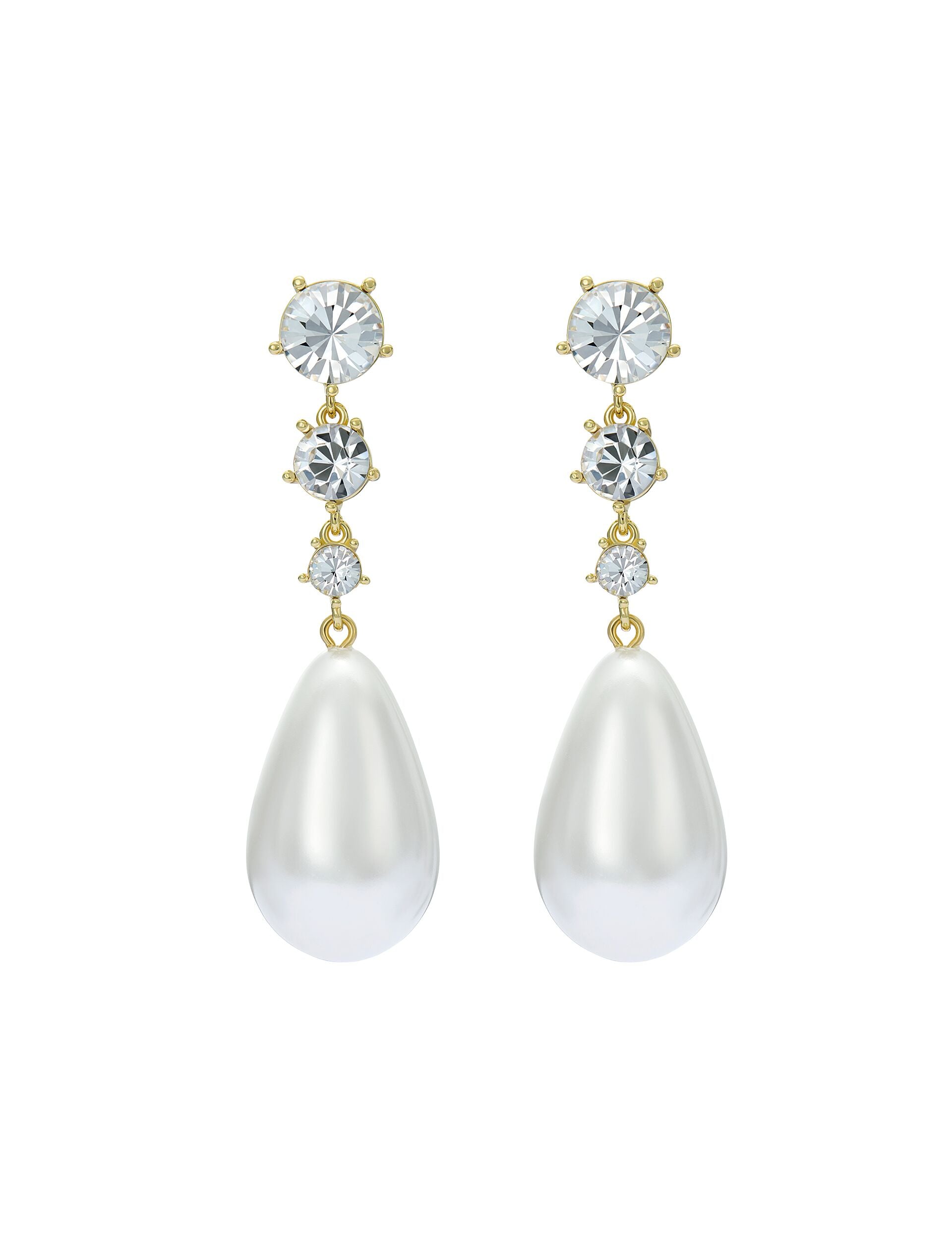 Accessorise to the nines with these PEARSTI statement earrings. A teardrop-shape faux pearl is suspended from a row of crystal stones for the perfect balance of elegance and sparkle.
