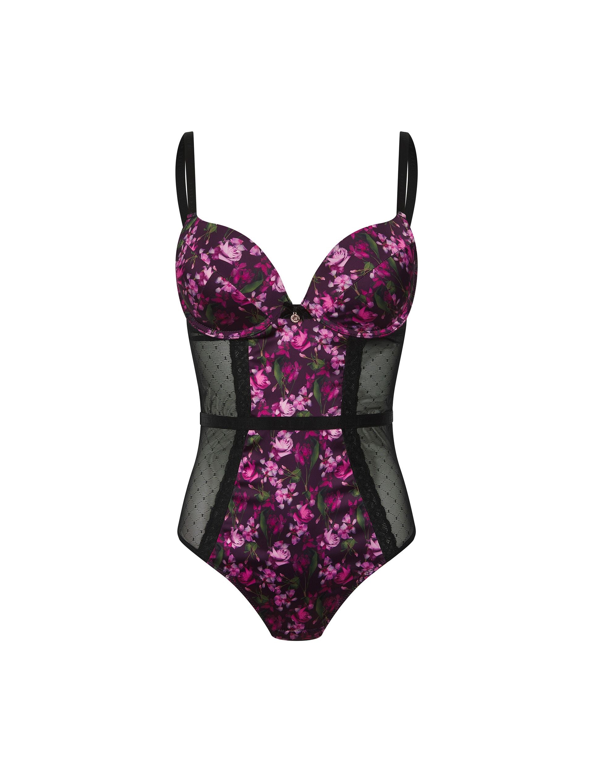 Your lingerie game never looked so good. The PHOEBE bodysuit delivers the romance with a floral print satin front, paired with sheer mesh panels and delicate lace trims. Shaped cups lift and support, whilst the sculpted waistline enhances all of your curves.