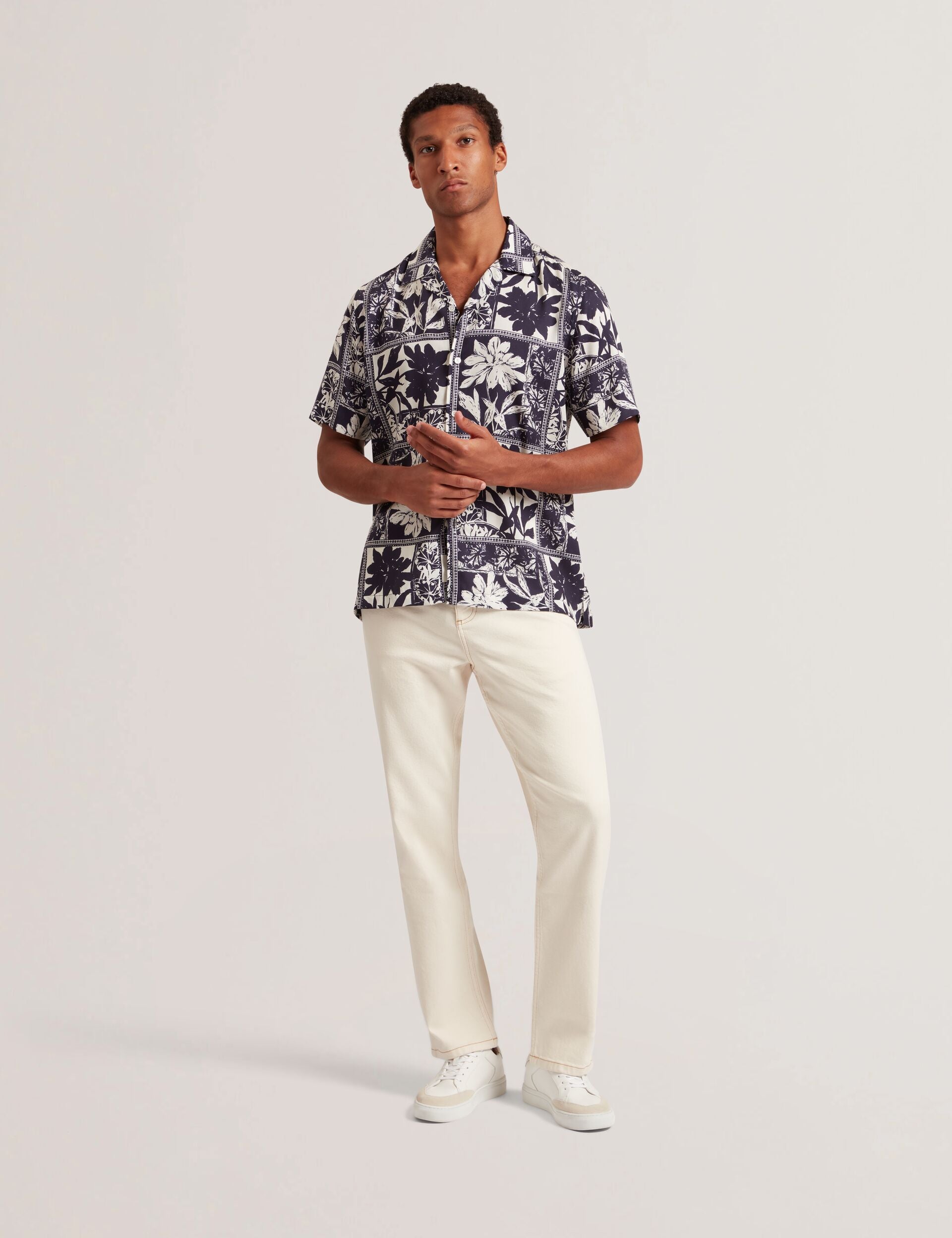 Botanical Print Cuban Collar Shirt