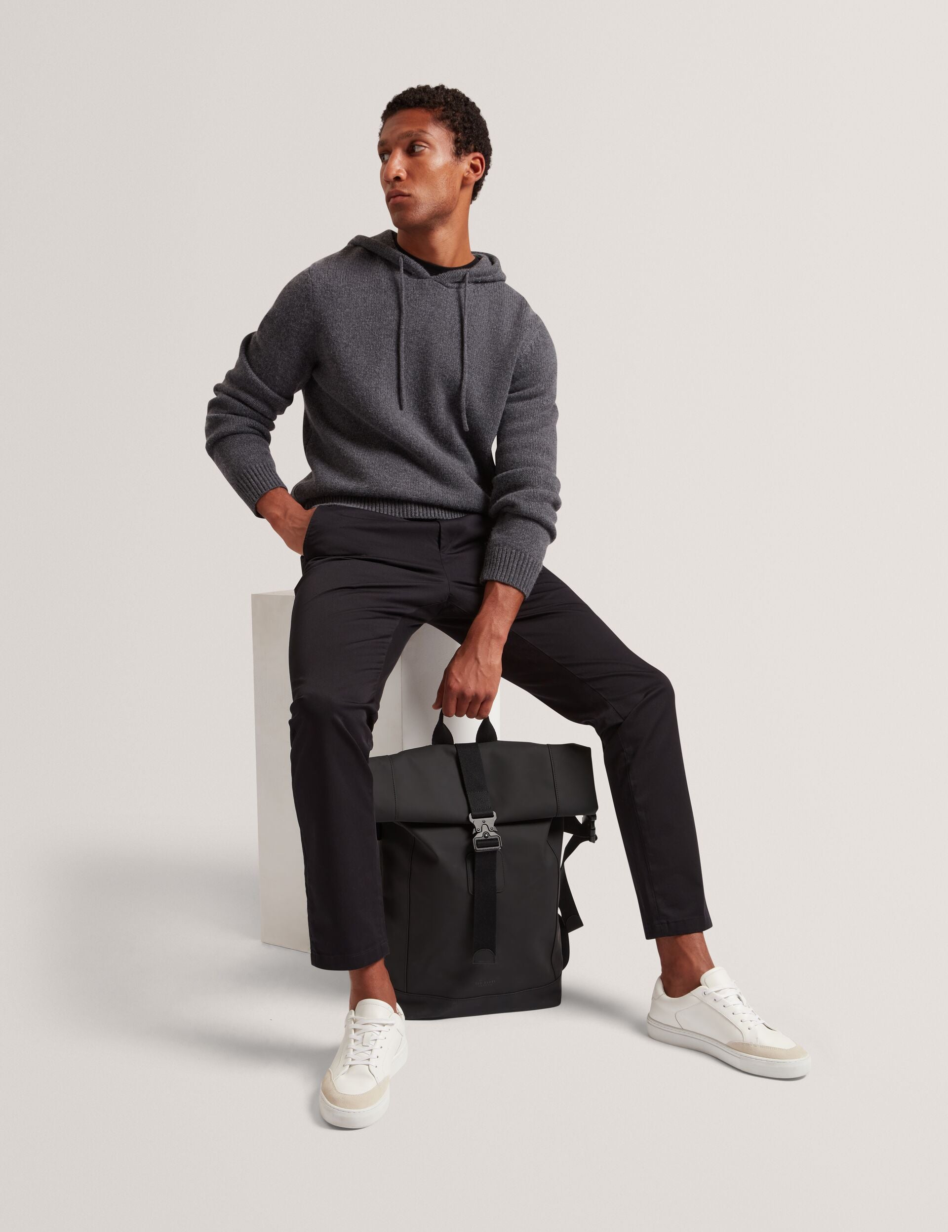 Tricky weather and busy commutes are no match for the RIVERS backpack, made from a rubberised PU fabric that's durable and water resistant. There's space inside for large laptops and all the other essentials, kept secure by the roll-top design with clip closure.