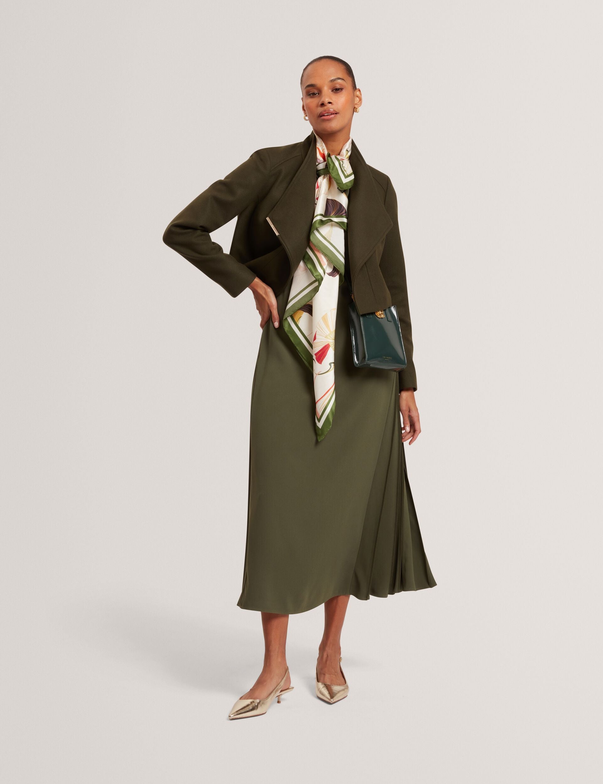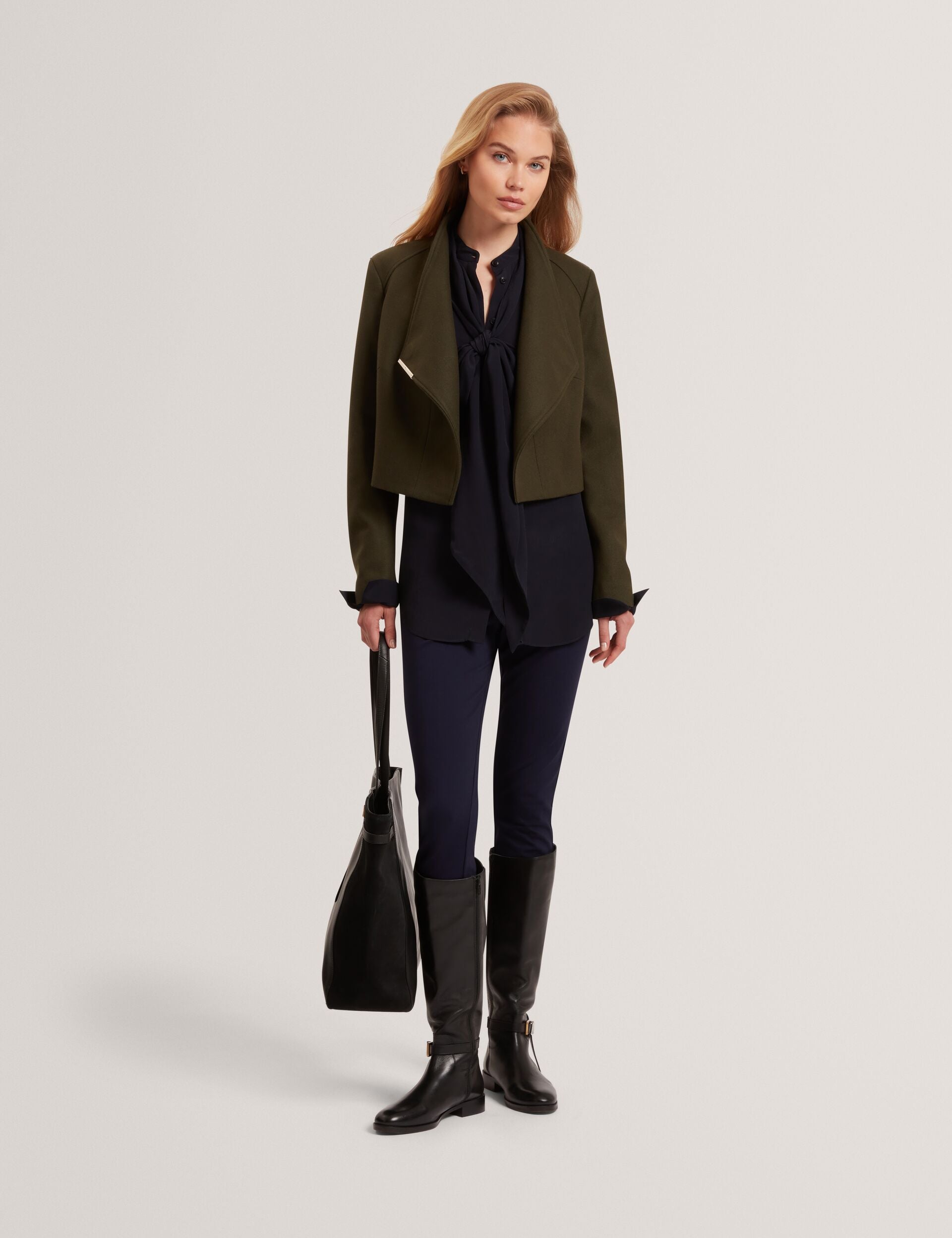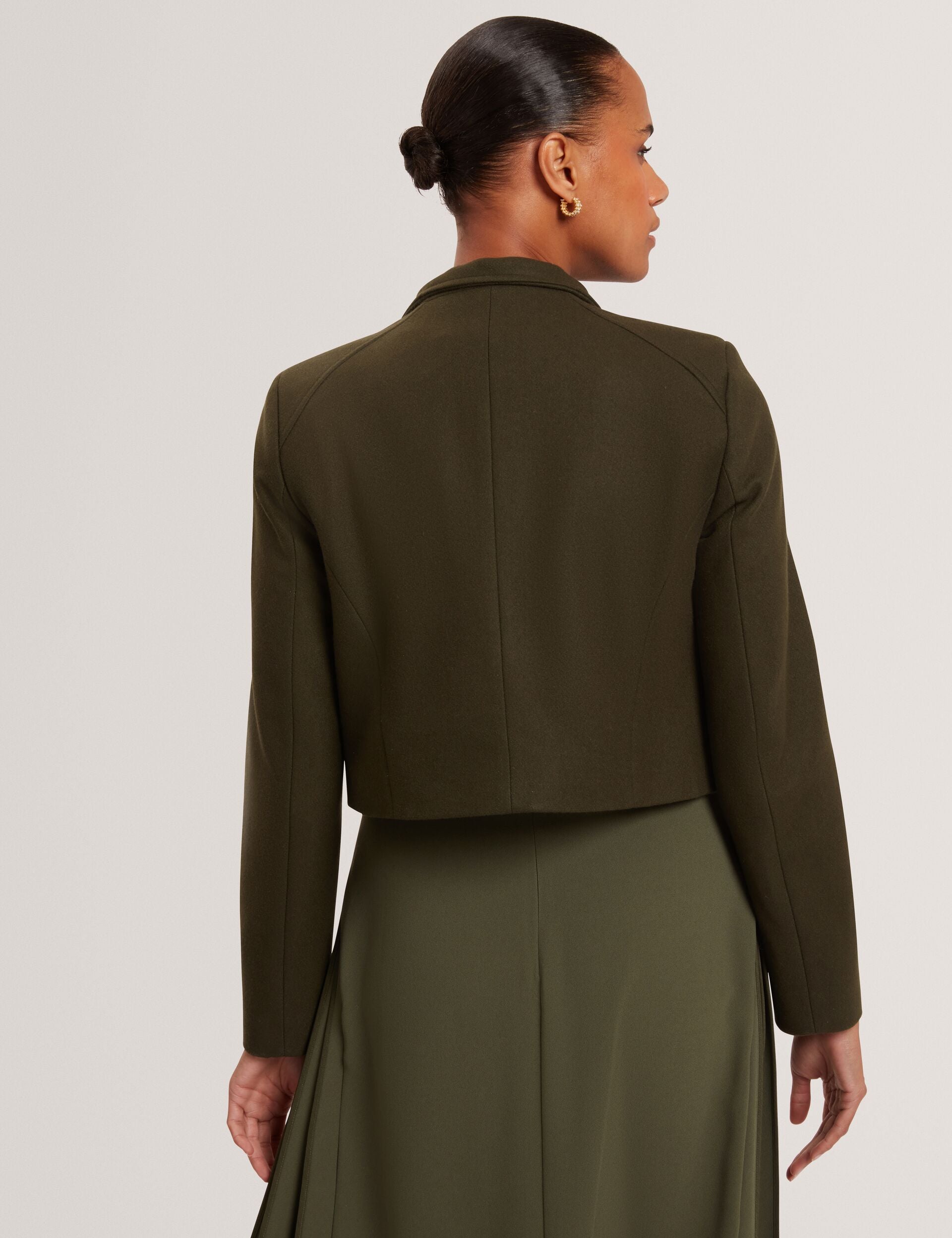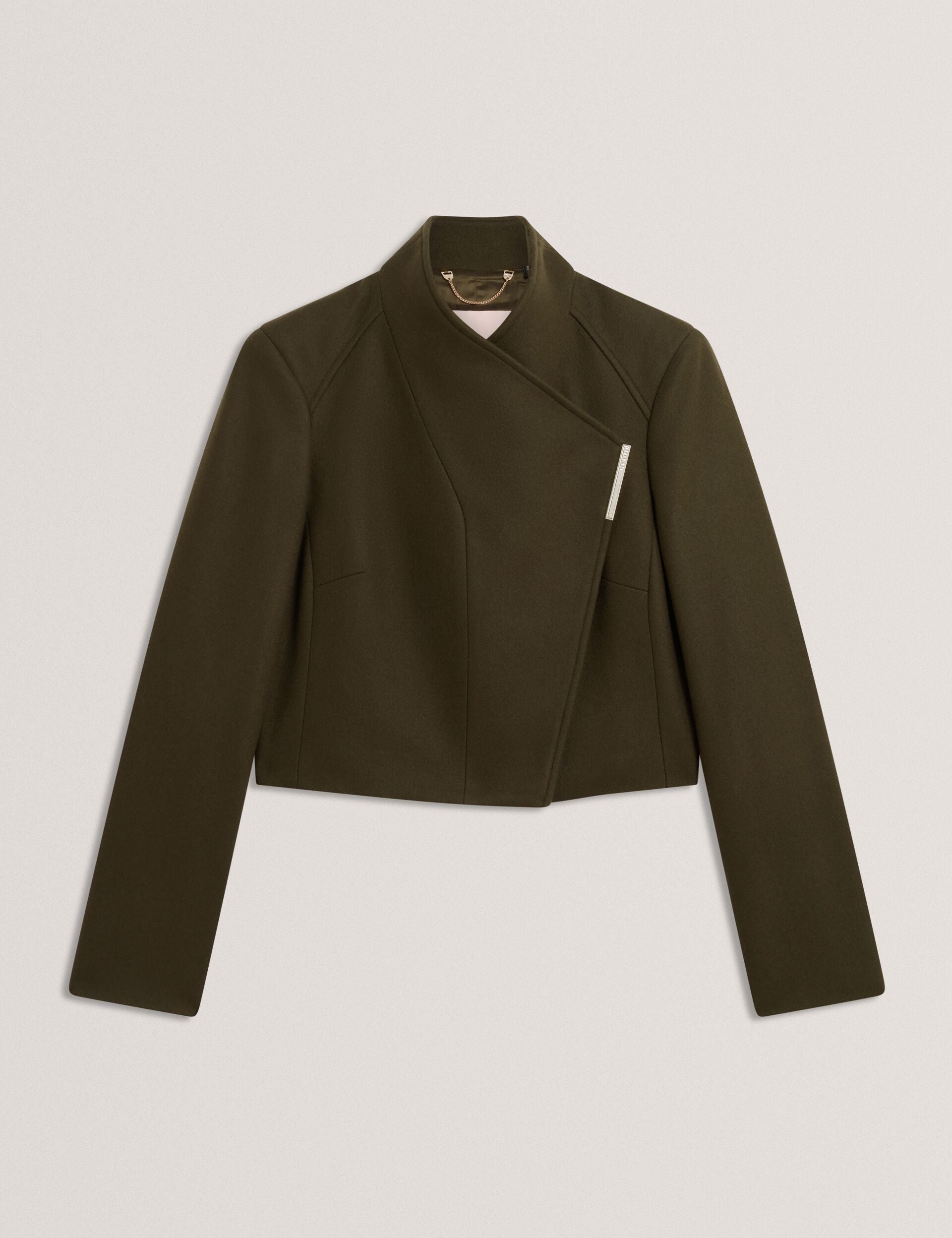 We'll keep it short, just like the ROSECEE jacket does. Designed in our signature wrap silhouette but in a shorter cropped length, it's the refined layer your transitional wardrobe needs. The luxurious wool blend gives it the perfect amount of warmth, and the funnel neckline maintains those clean lines.