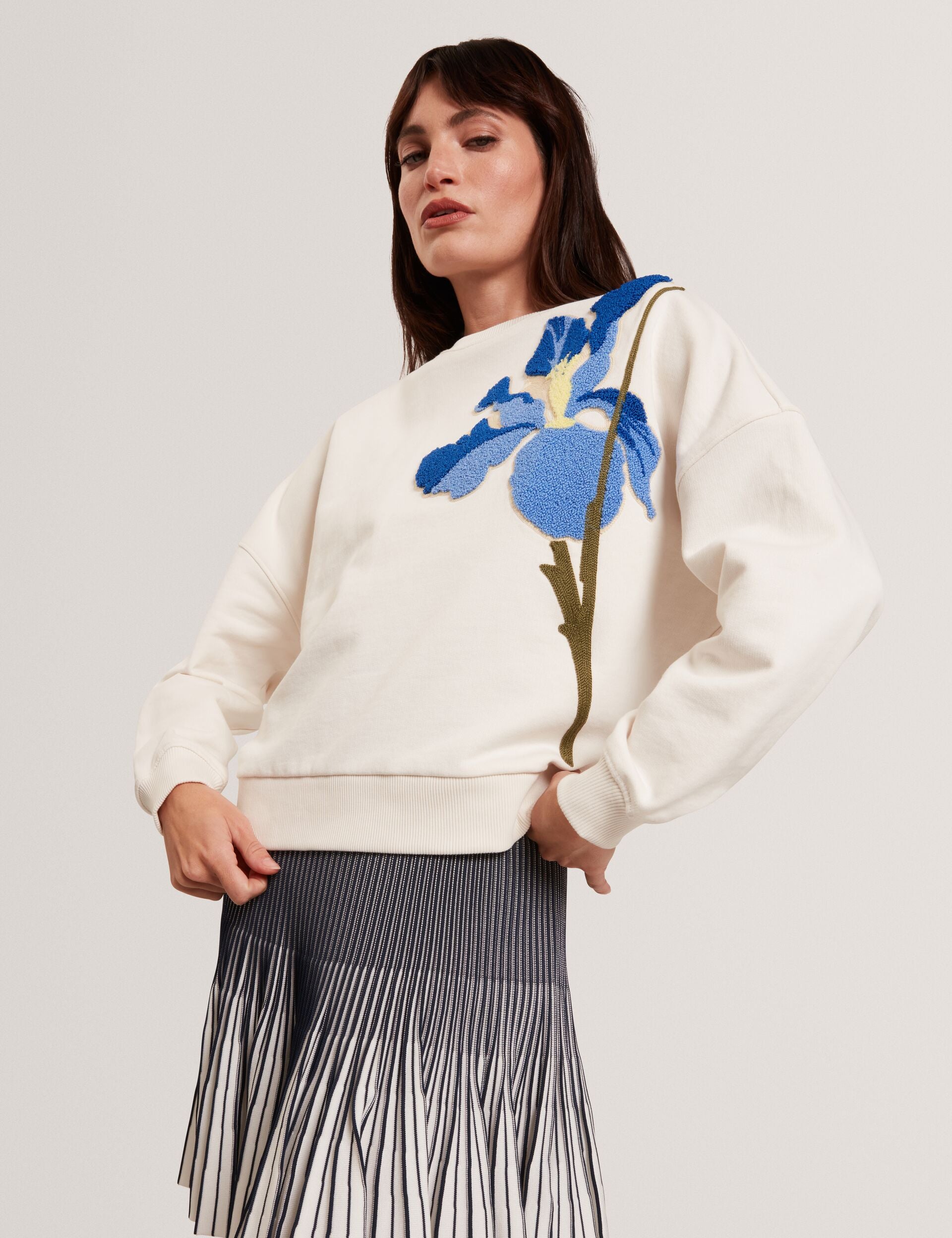 Tufted Floral Graphic Cotton Sweatshirt