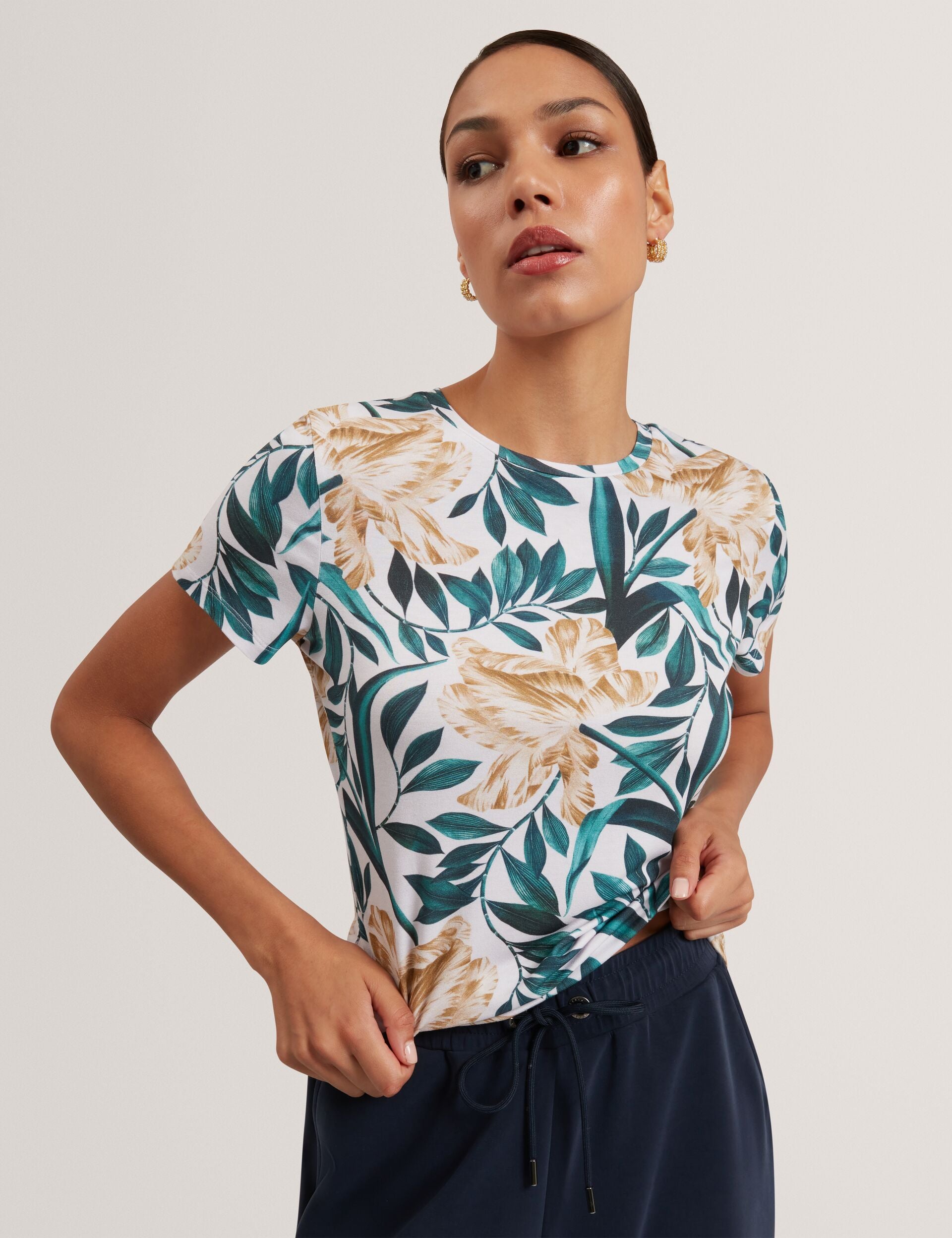 Ted Baker staples are designed to stand out, and the SELLEY short sleeve t-shirt is no exception. Crafted from a stretch jersey fabric in a flattering slim fit, the vibrant yellow tulip design will breathe new life into your day-to-day looks.