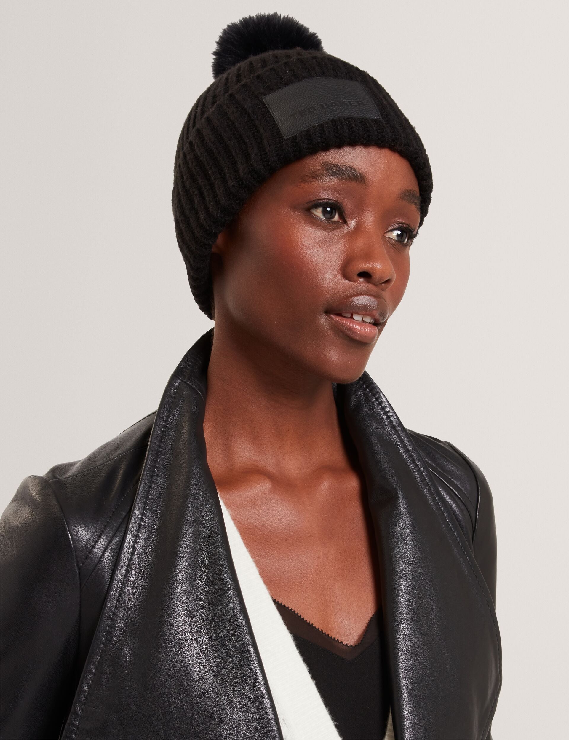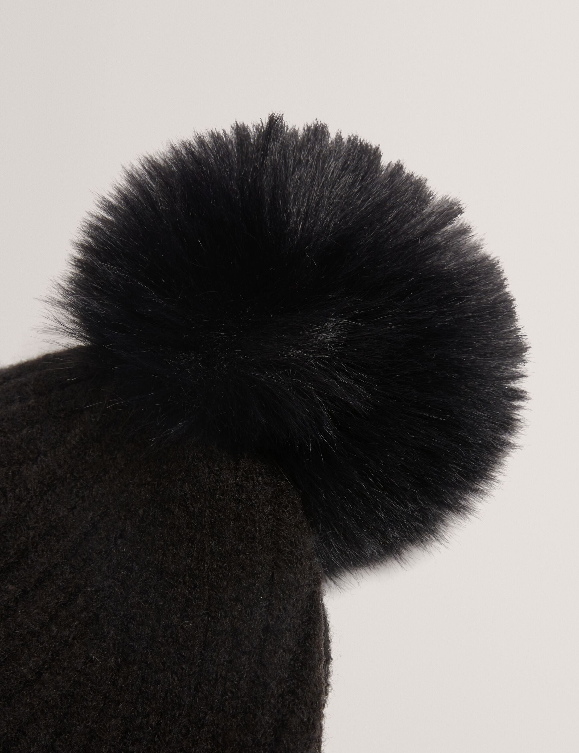 The SERSHII bobble hat is style that's sweet and cosy. Made from a chunky ribbed knit and topped with a plush faux fur bobble, its colour block design makes it ideal for keeping you warm day in, day out.