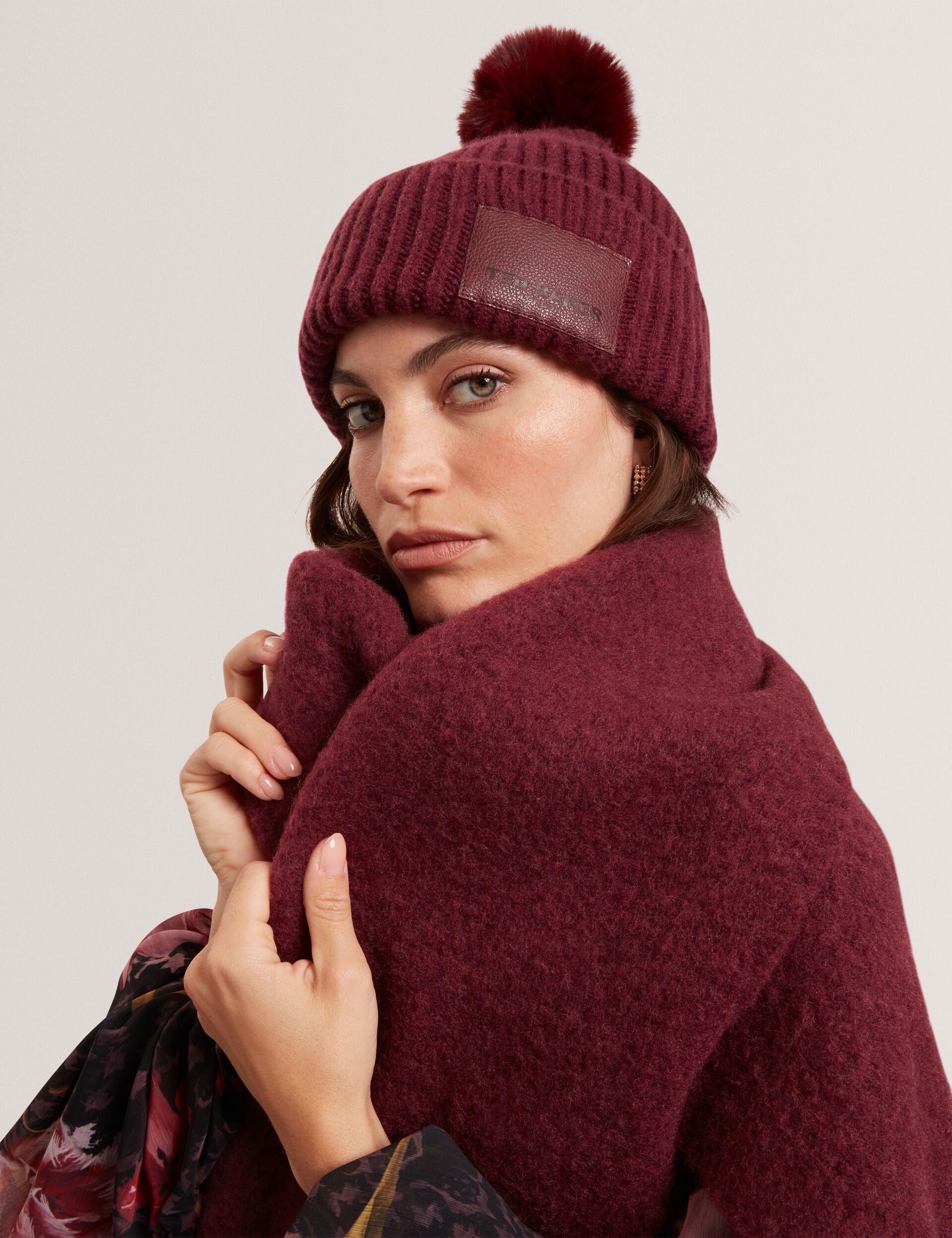 The SERSHII bobble hat is style that's sweet and cosy. Made from a chunky ribbed knit and topped with a plush faux fur bobble, its colour block design makes it ideal for keeping you warm day in, day out.