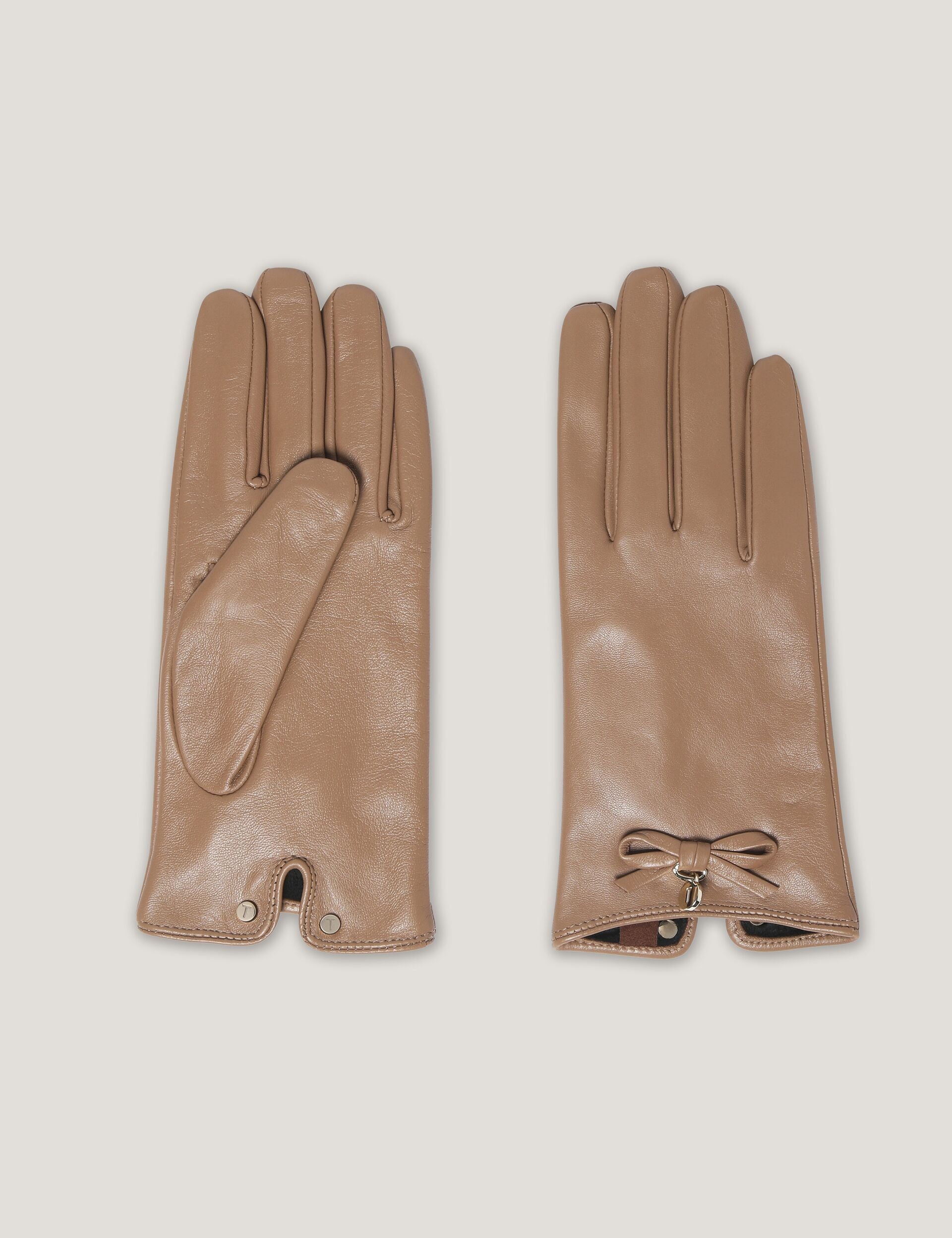 An elegant cold-weather essential, SHERYYS is crafted from buttery soft leather with a cosy fabric lining. A bow embellishment brings a sweet touch, whilst the split cuff and gold-tone hardware details elevate effortlessly.