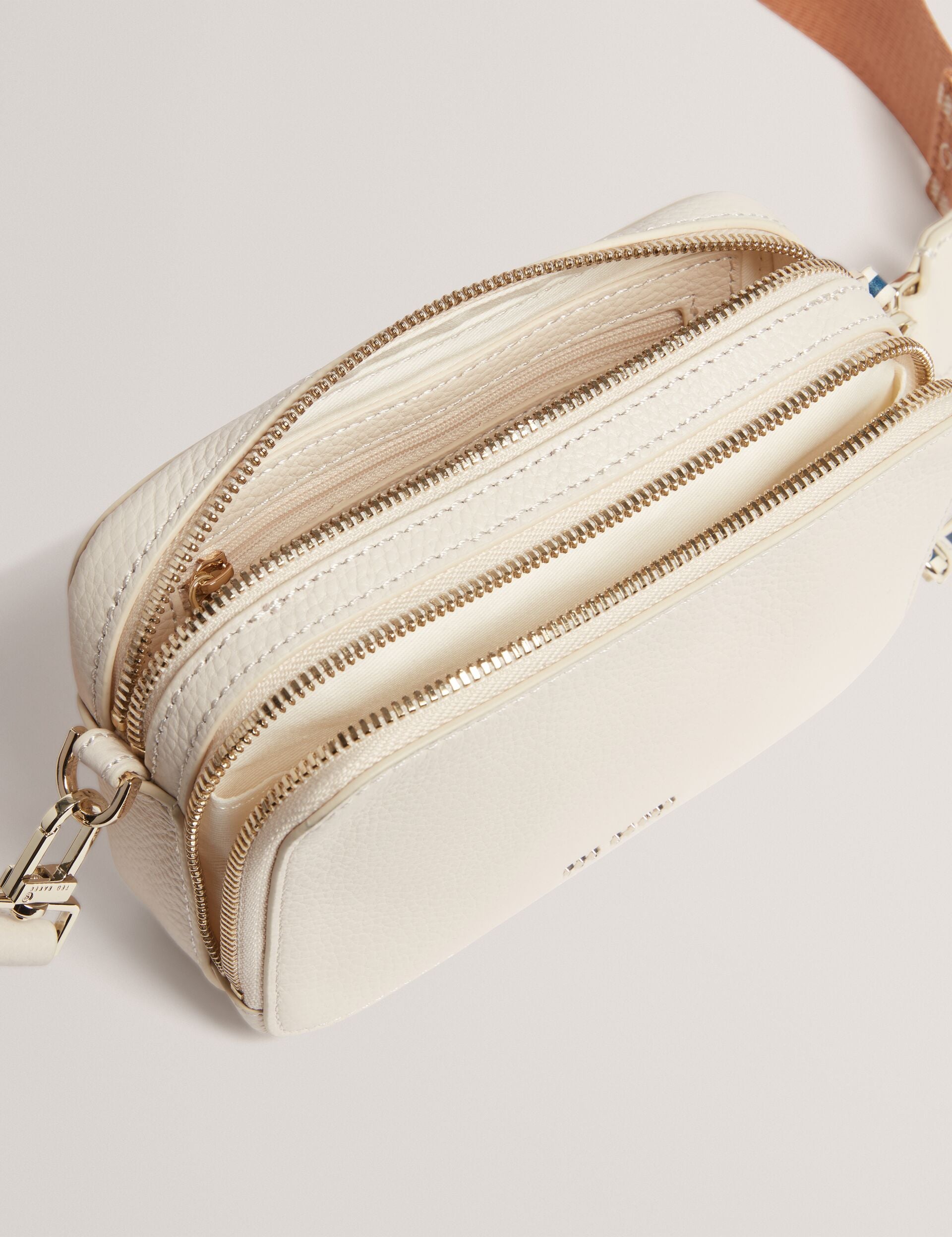 - Branded webbing crossbody strap