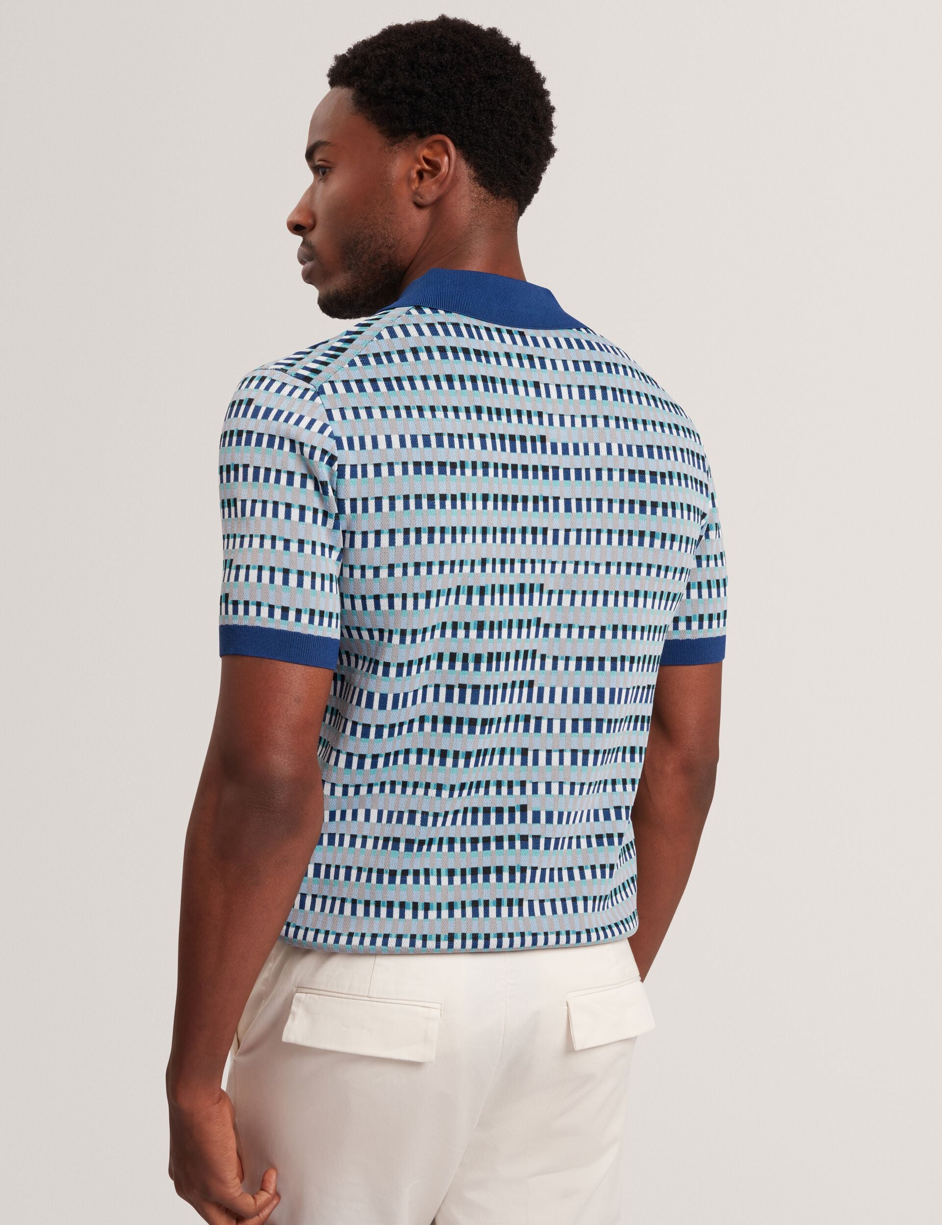 Designed with a bold dash check pattern and contrast colour trims, this TADMORI jacquard knit polo is smart-casual style that oozes personality.