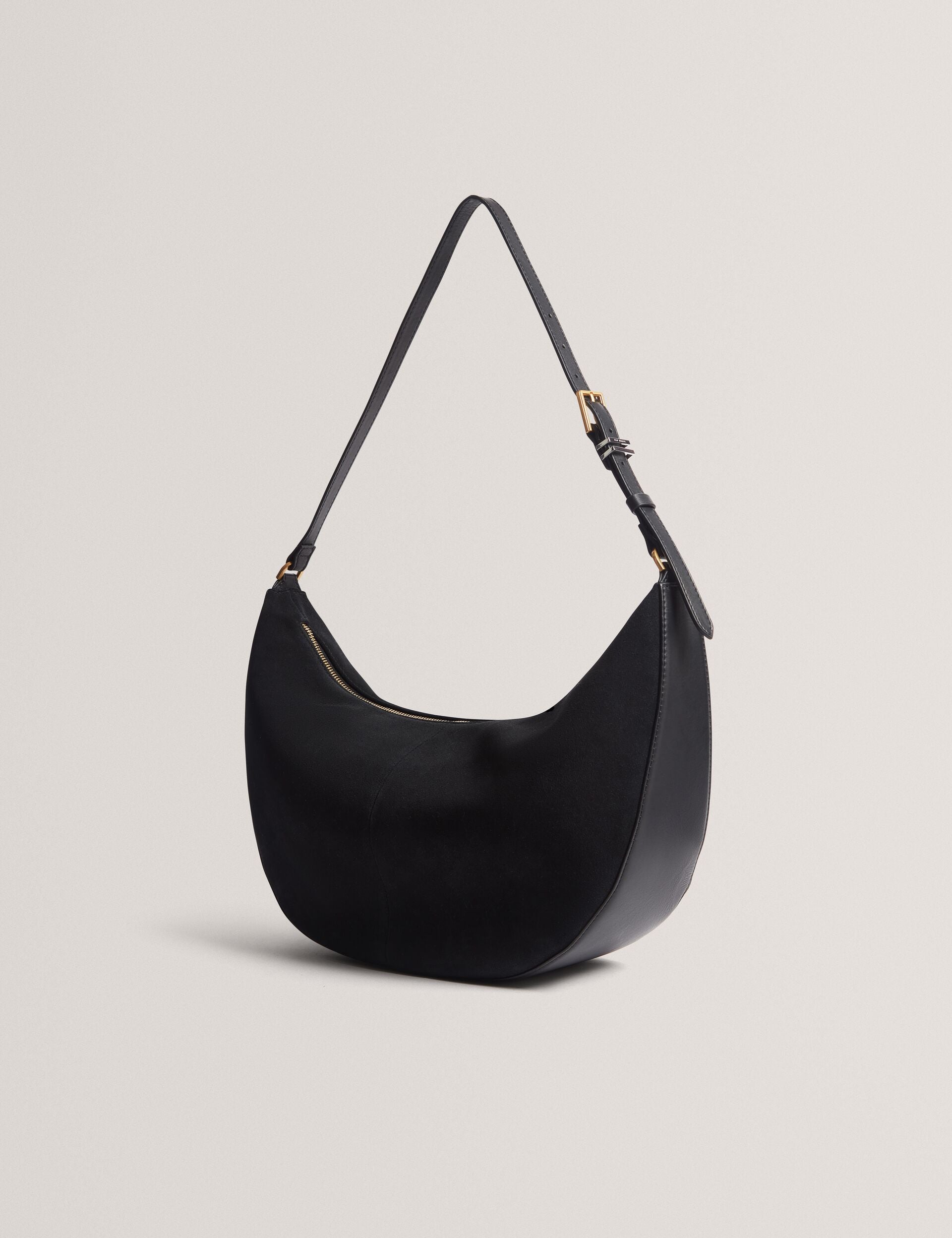Introducing TALIEE - where soft suede and buttery leather meets a structured half-moon shape. Complete with an adjustable buckled shoulder strap and roomy interior, this shoulder bag brings effortless luxe to every day.
