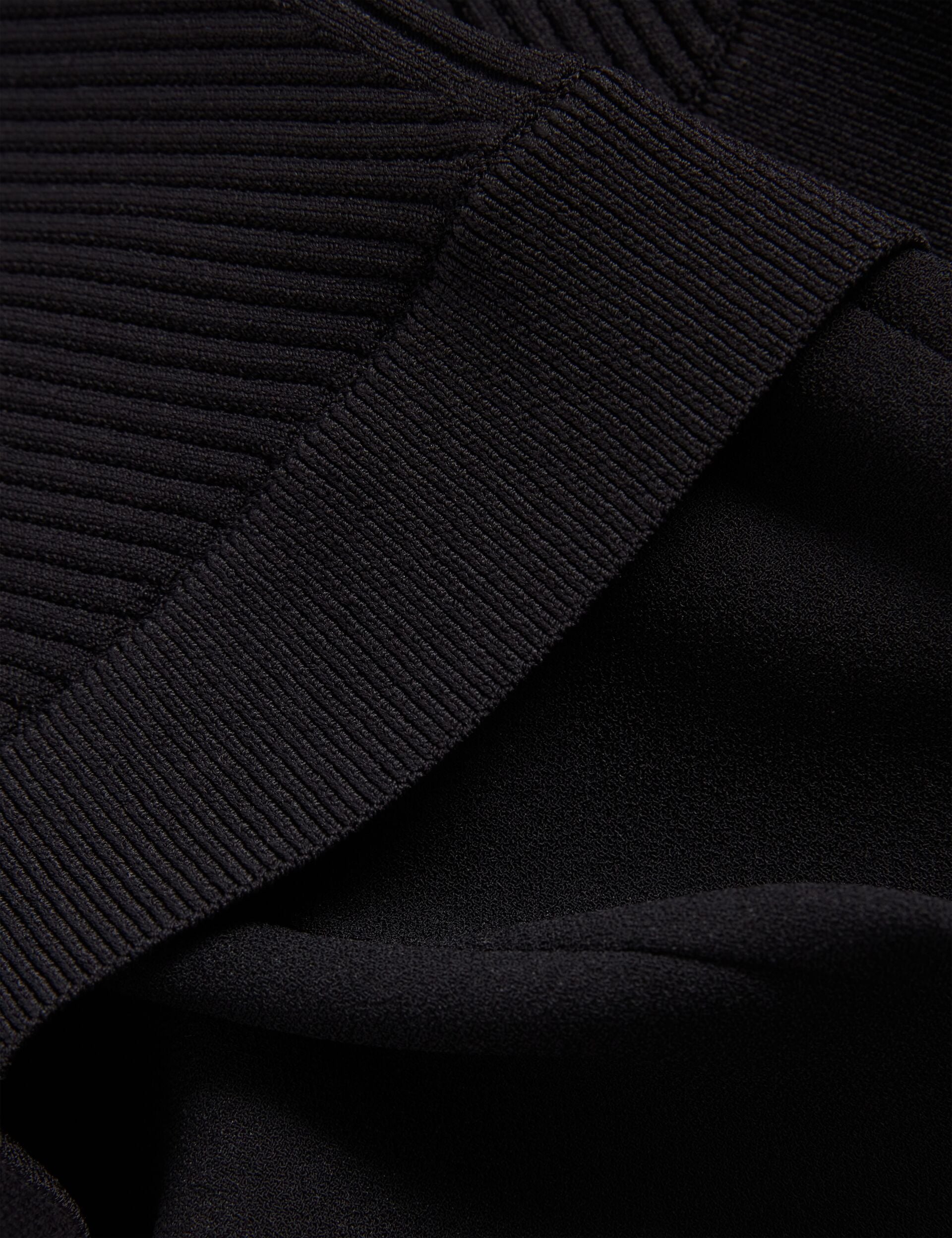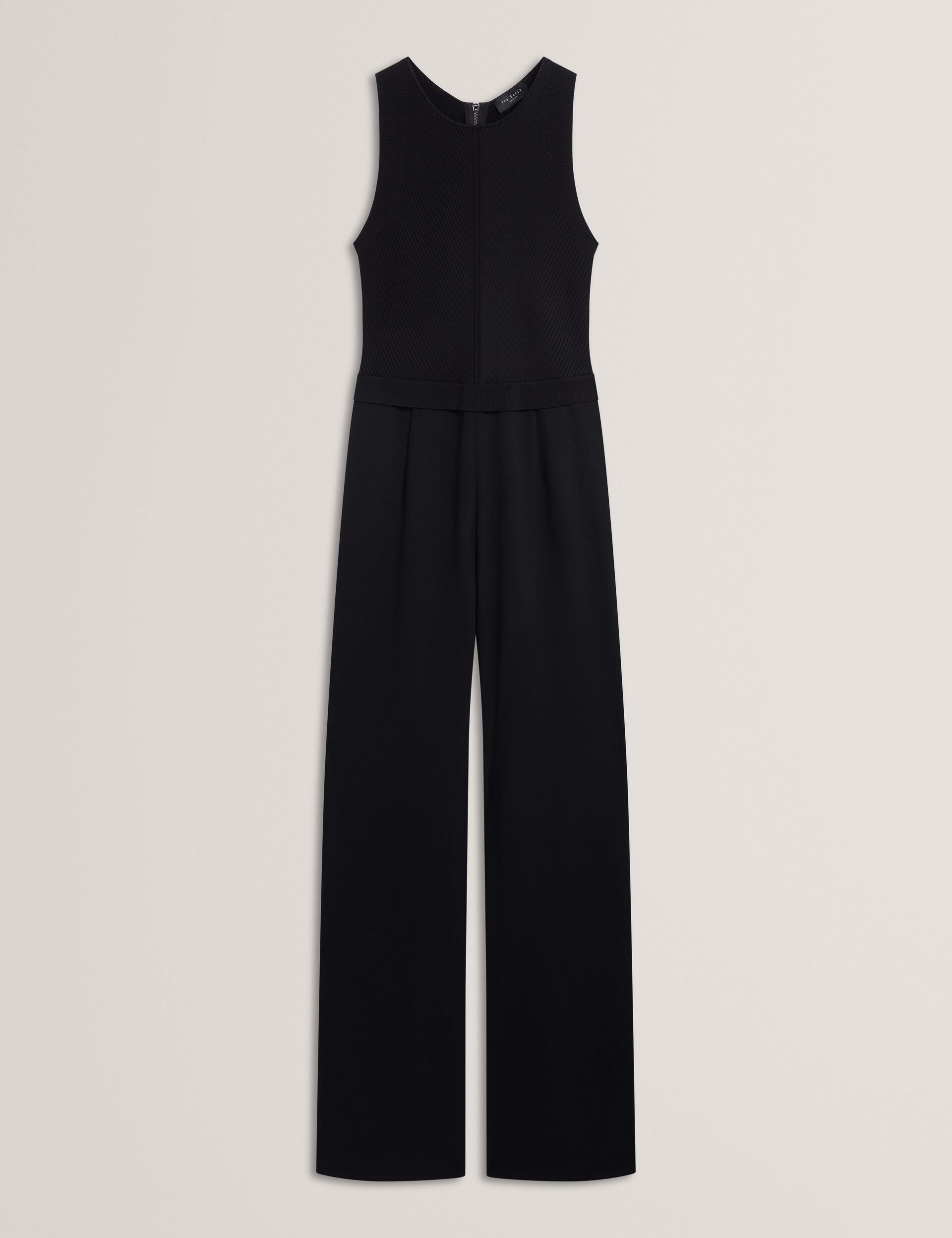 Move over LBD - it's time for the little black jumpsuit. TOVELI features a chevron knit top with a modern racerback, which we've paired with woven wide leg trousers for a refined finish. Throw on a blazer for the office, and add statement jewellery to make it evening-ready.