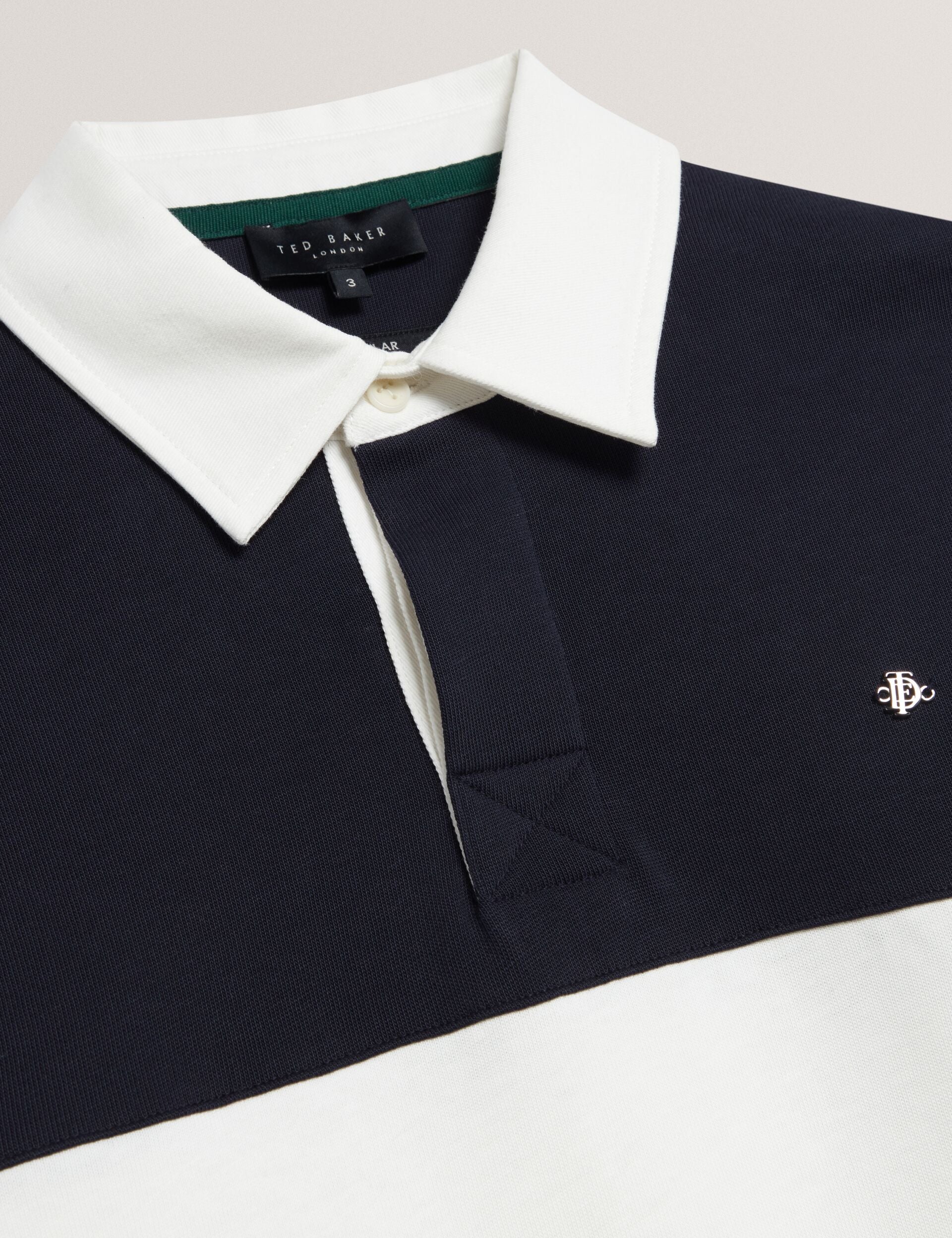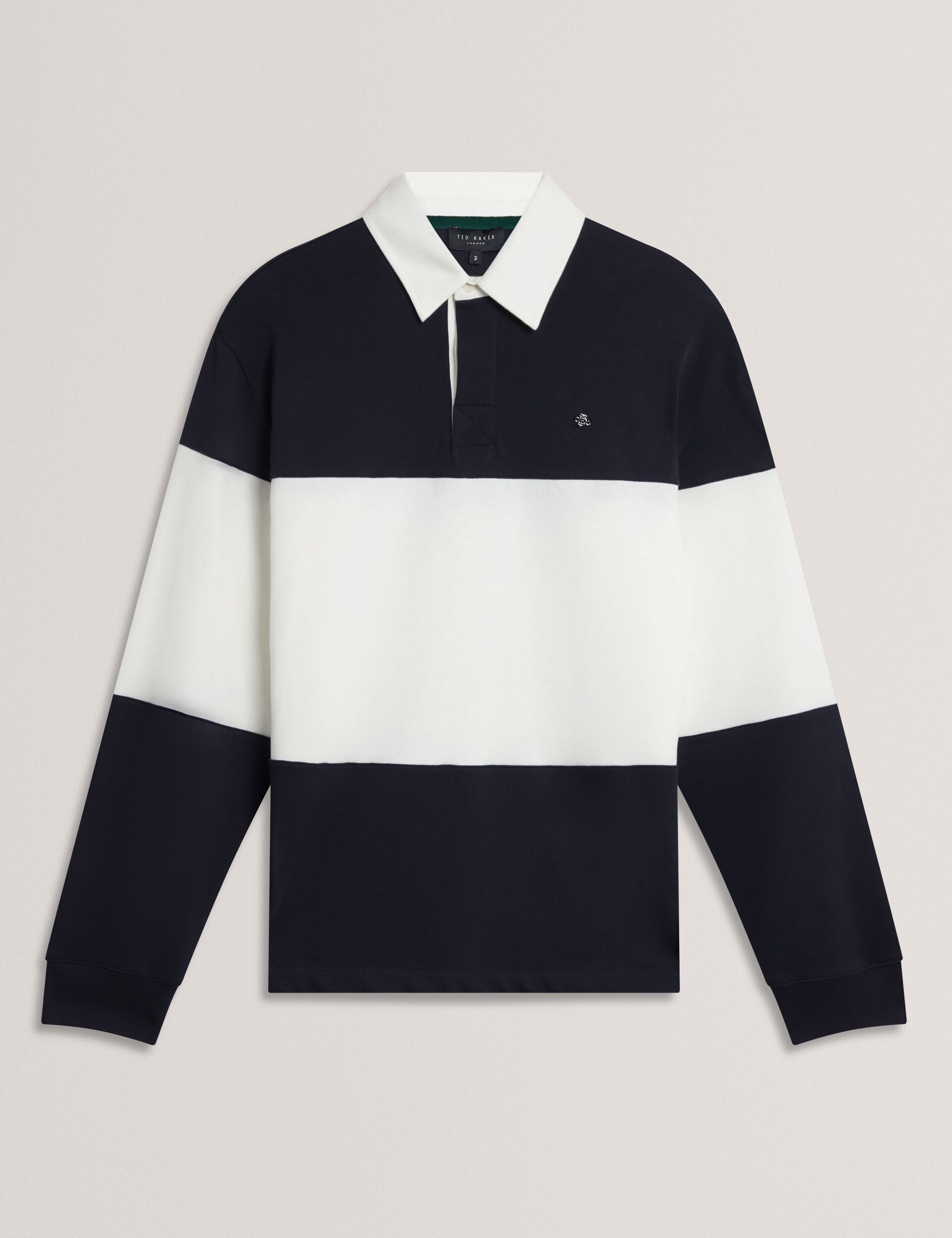 A casual wardrobe classic, the TRAVISS rugby shirt is the modern way to do preppy style. Block stripes bring easy interest, and we've added a concealed button placket to the collared neckline for a cleaner finish. Pure cotton jersey fabric creates a comfortable fit that you'll be wearing on rotation.
